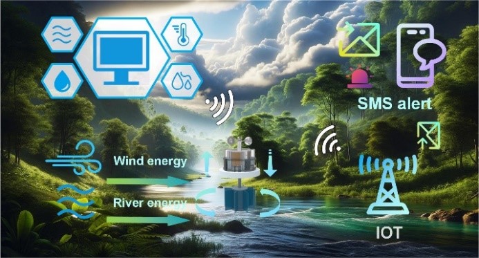 论文4提出了一种电磁-摩擦复合纳米发电机(CX-TEHG),包括用于测量流速的摩擦电纳米发电机(W-TENG)以及测量水位上升速度的摩擦纳米发电机(F-TENG)。为高效收集水流能,通过行星齿轮组对河流能驱动的W-EMG进行增速,风能驱动F-EMG进行能量收集,实现风能和水流能的多能量收集。该项工作通过低成本的信号采集系统和信息传输系统对流速、水位上升速度、温度、湿度、水质等进行信息采集,实现对河流生态环境的全方位监测。