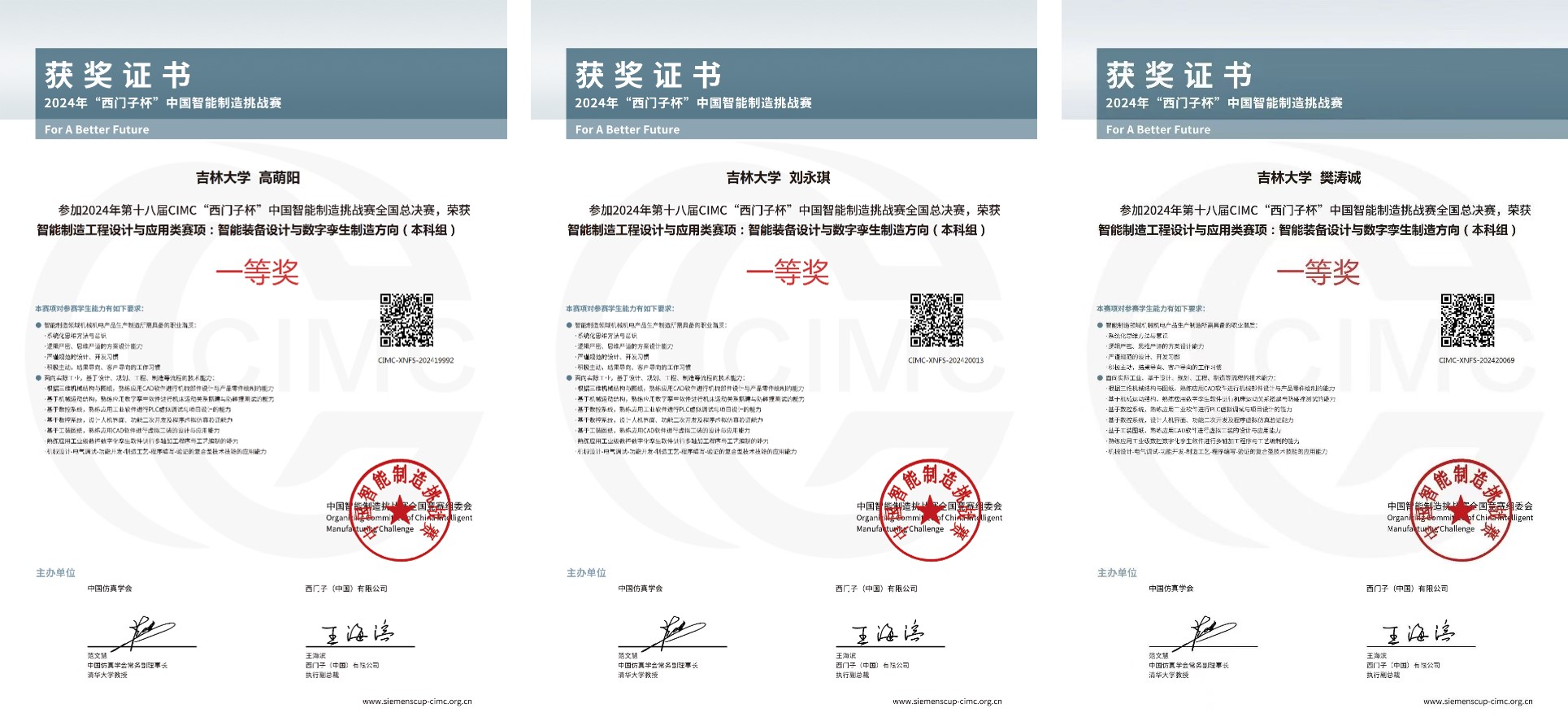 公司共有5支队伍参赛,其中有4支队伍参与“智能装备设计与数字孪生制造”赛项,经过激烈的角逐,由孙慧超、刘海忠老师指导,樊涛诚、高萌阳、刘永琪组成的参赛队伍在“智能装备设计与数字孪生制造”赛项中获区域赛特等奖和国赛一等奖(国赛第九名),这是公司参与该赛项以来的最佳成绩;其他3支队伍获区域赛一等奖1项、区域赛二等奖2项。另外1支队伍参与了“精益智造系统设计与优化”赛项,获区域赛二等奖。