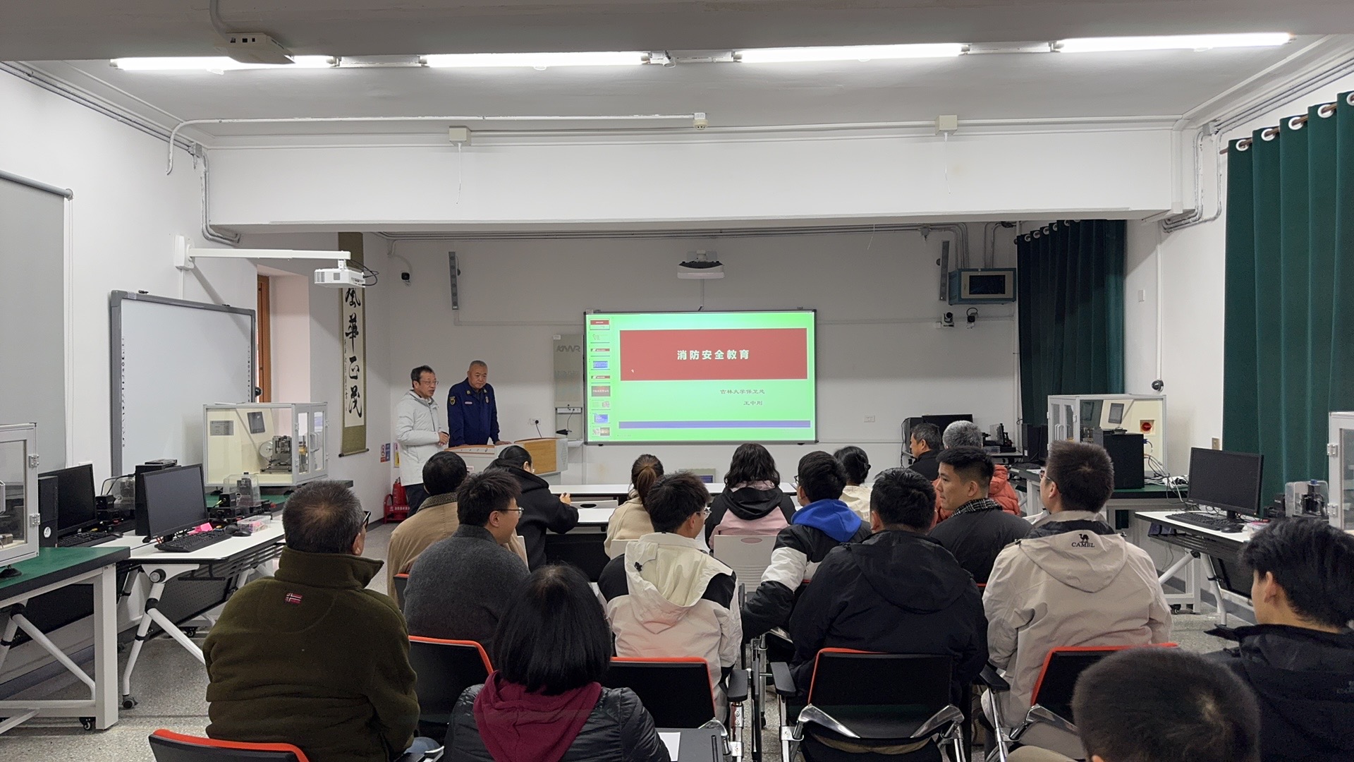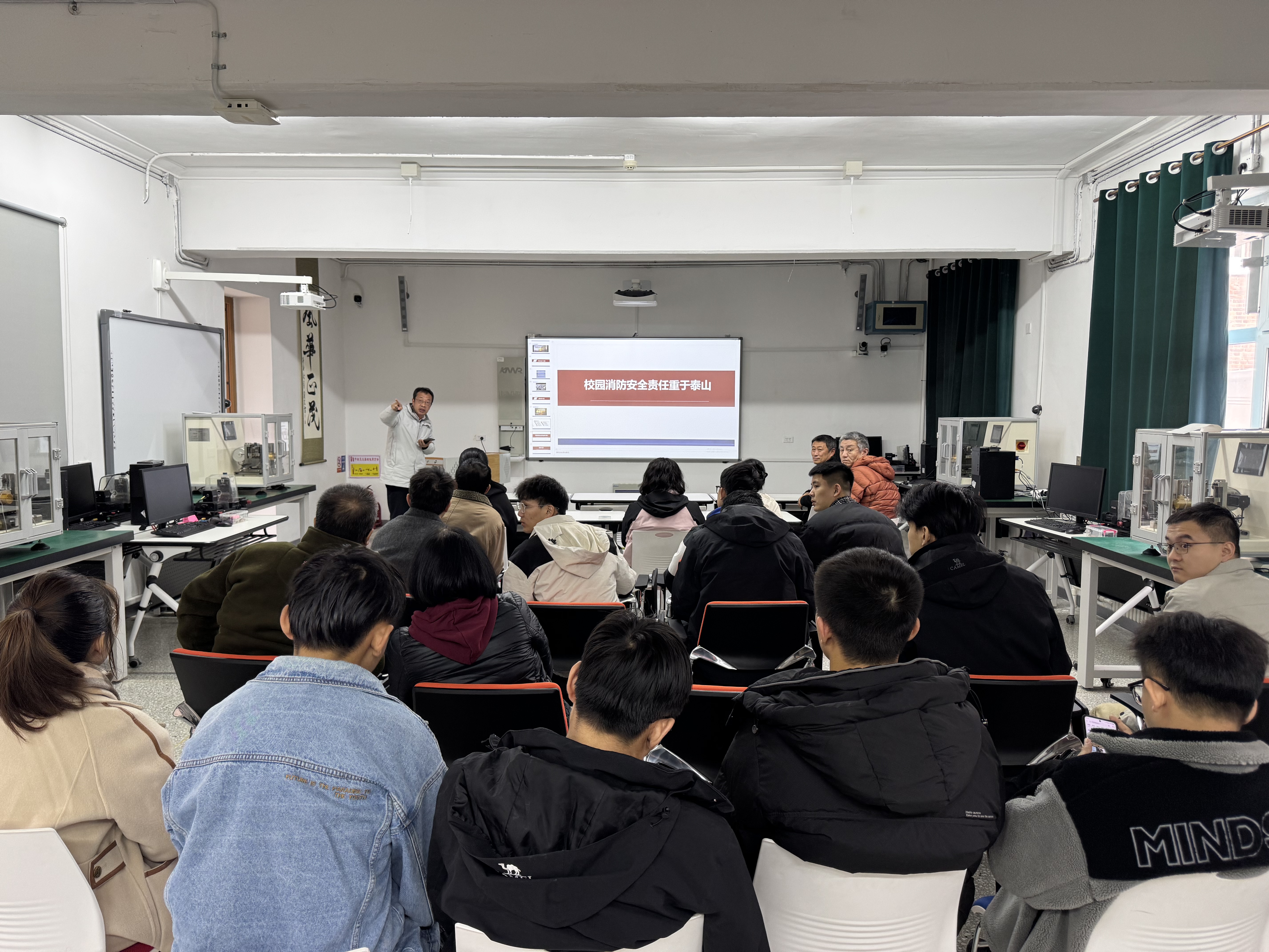 东区保卫办消防科王中刚老师为师生进行了精彩的消防安全培训。王中刚结合近年来的火灾案例,深入浅出地讲解了火灾的危害性、预防措施、初期火灾的扑救方法以及火灾逃生中的自我保护要点。同时,针对公司实验室和教学设施的特点,王中刚特别强调了消防安全的重要性,并讲解灭火基本原理。