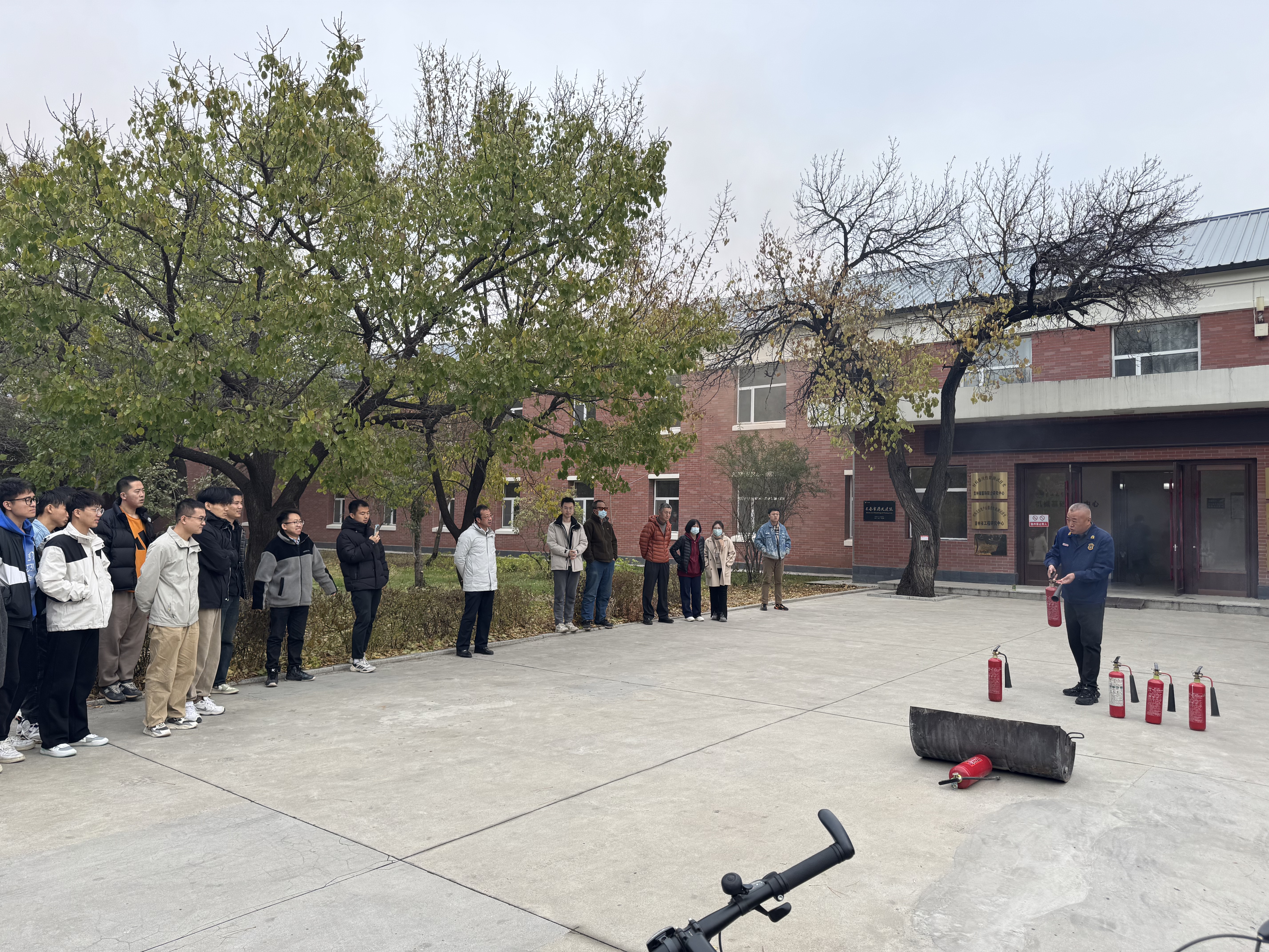 消防疏散演练在东区保卫办刘海江老师的指导下有序进行。在室外,王中刚讲解了二氧化碳灭火器的使用方法,并进行了现场演示。现场师生代表兴趣盎然地参与了灭火实操。演练过程中,王中刚还针对同学们距离火源过近、未指向火焰根部等问题进行了指导。