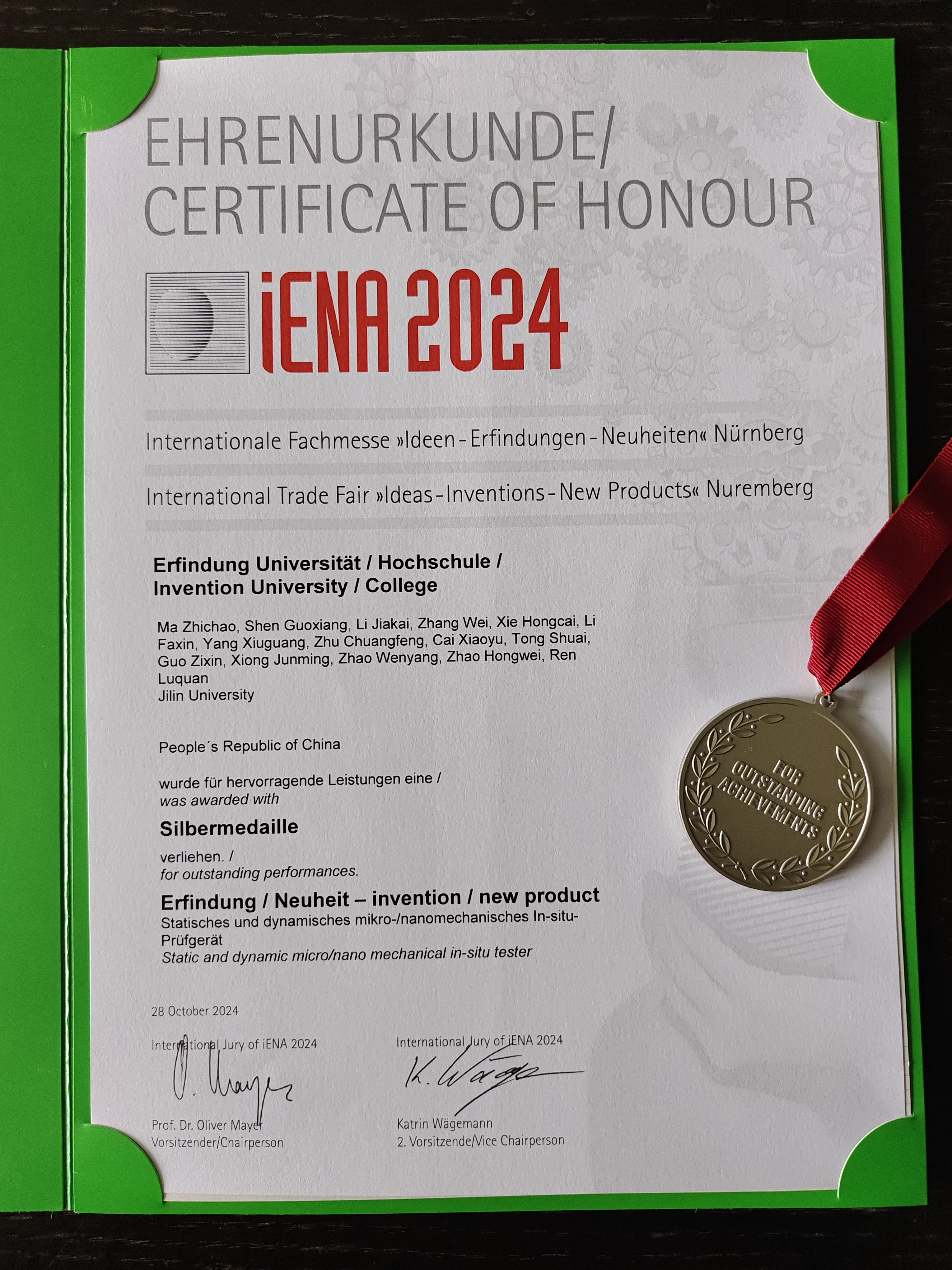 公司赵宏伟教授、马志超教授团队参展的“材料复合应力高温疲劳性能原位测试仪”项目获得展会金奖,“静动态微纳米力学原位测试仪”项目获得展会银奖。