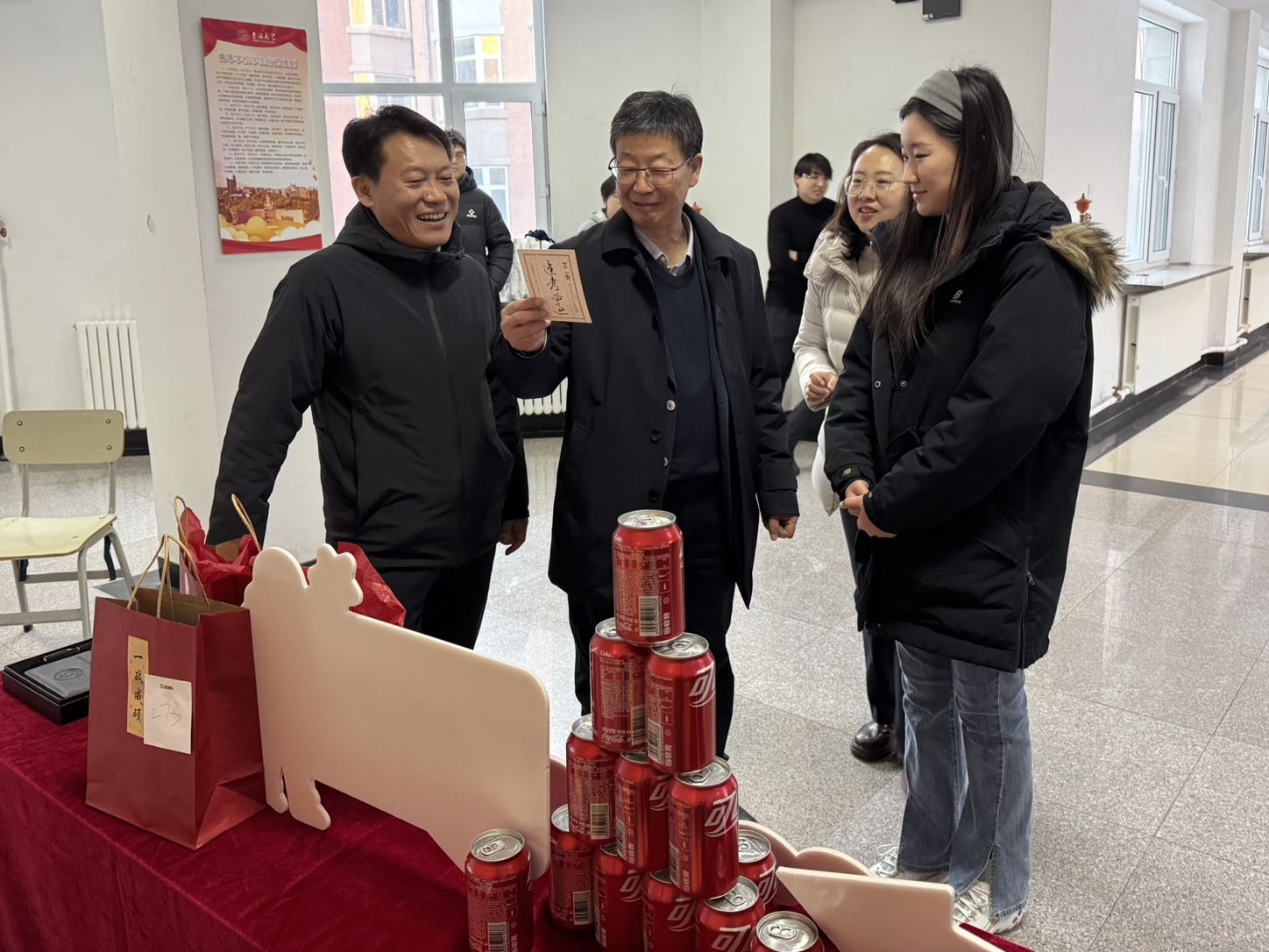 活动现场,公司领导与考研学子亲切交流,强调考研对于个人成长和职业发展的重要性,关切其复习进度与生活状况,鼓励他们在最后的冲刺阶段保持良好的心态,叮嘱学子们安心备考、注意防寒、诚信考试,并表示公司将全力支持考研学子,为其提供必要的帮助和指导。随后,他们将公司精心准备的考研福袋发放到考研学子手中,并预祝考研学子“苹”步青云,一战成硕。
