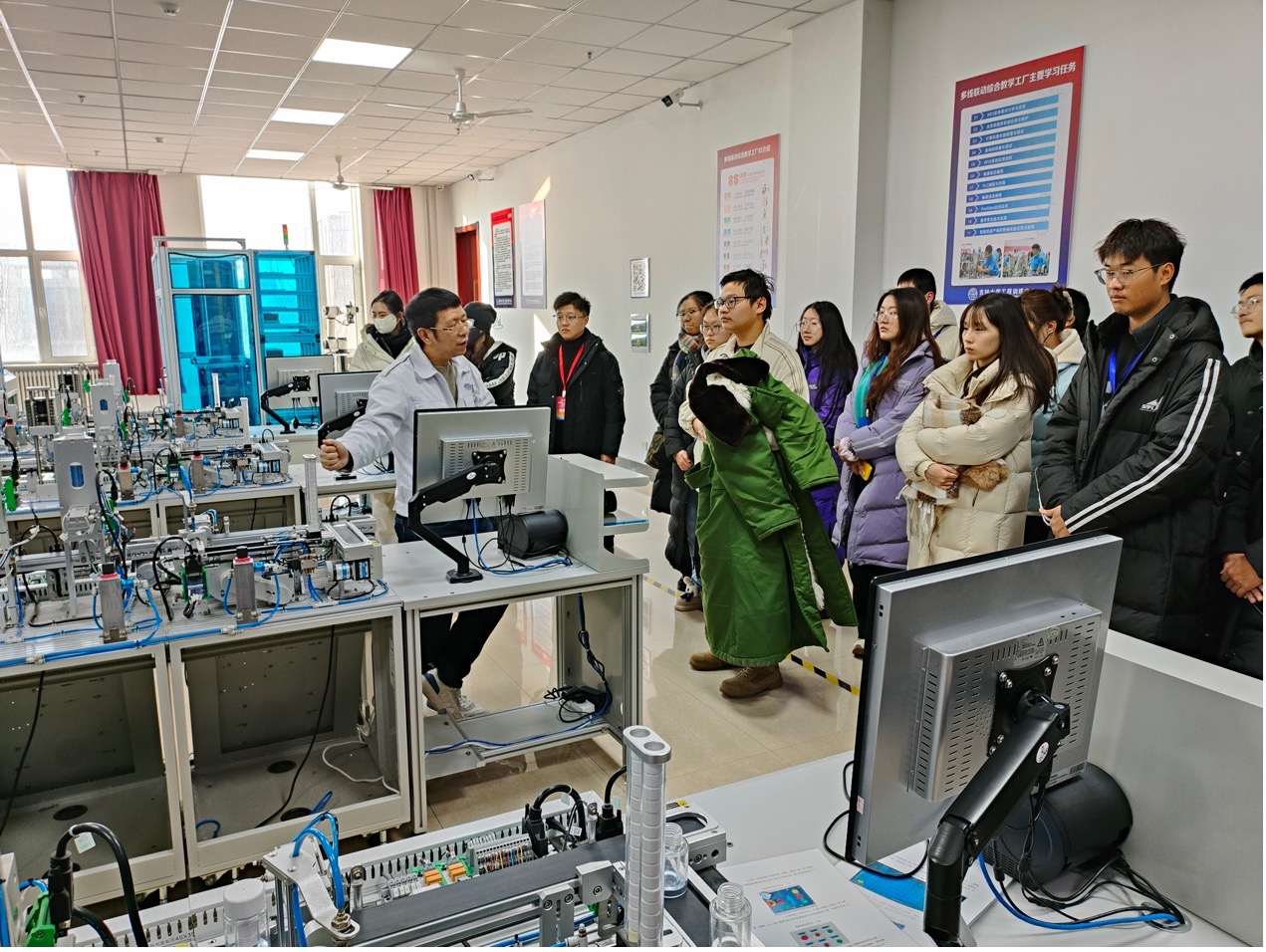 同学们先后走进加工中心、智能制造、激光加工、数控车、3d打印、多线联动教学工厂和竞技机器人等实训室,了解了最新的现代工业制造技术,直观感受到了加工设备自动化和智能化的先进性,增强了员工对工程训练的认知,激发了员工的学习兴趣与动力。参观之余,同学们抓住机会积极与老师讨论,认真了解学习,积极动手体验,不仅加强了对自己专业的认知和认同感,同时也拓展了自己的创新视野。
