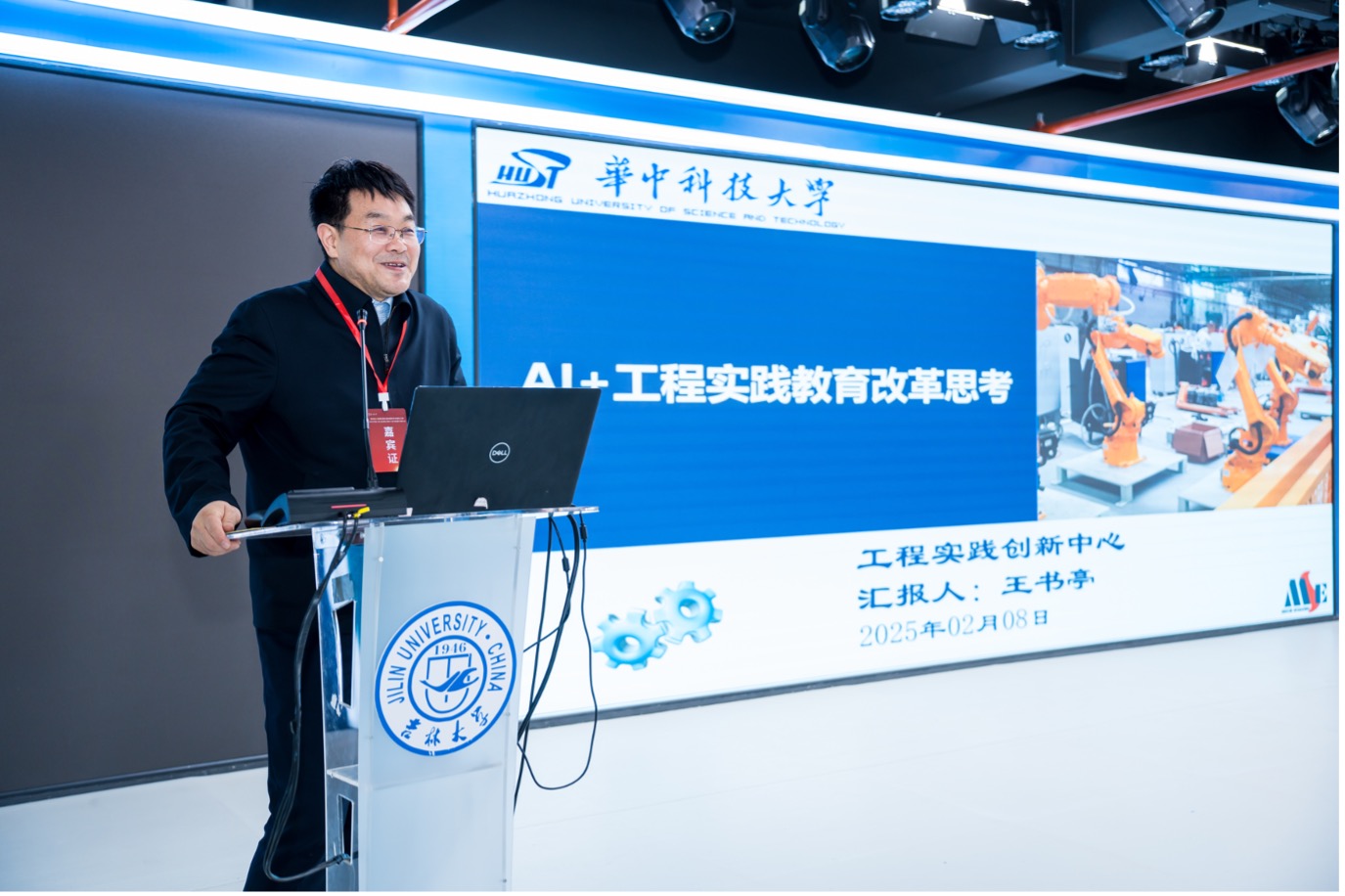 华中科技大学工程实践创新中心主任,国家级机械实验教学示范中心主任王书亭以《AI+工程实践教育改革思考》为题,聚焦于工程实践与创新主题,他指出人工智能技术正以前所未有的速度重塑世界,实践教育应在新时代勇于创新,打破传统框架,与现实生活同频共振。