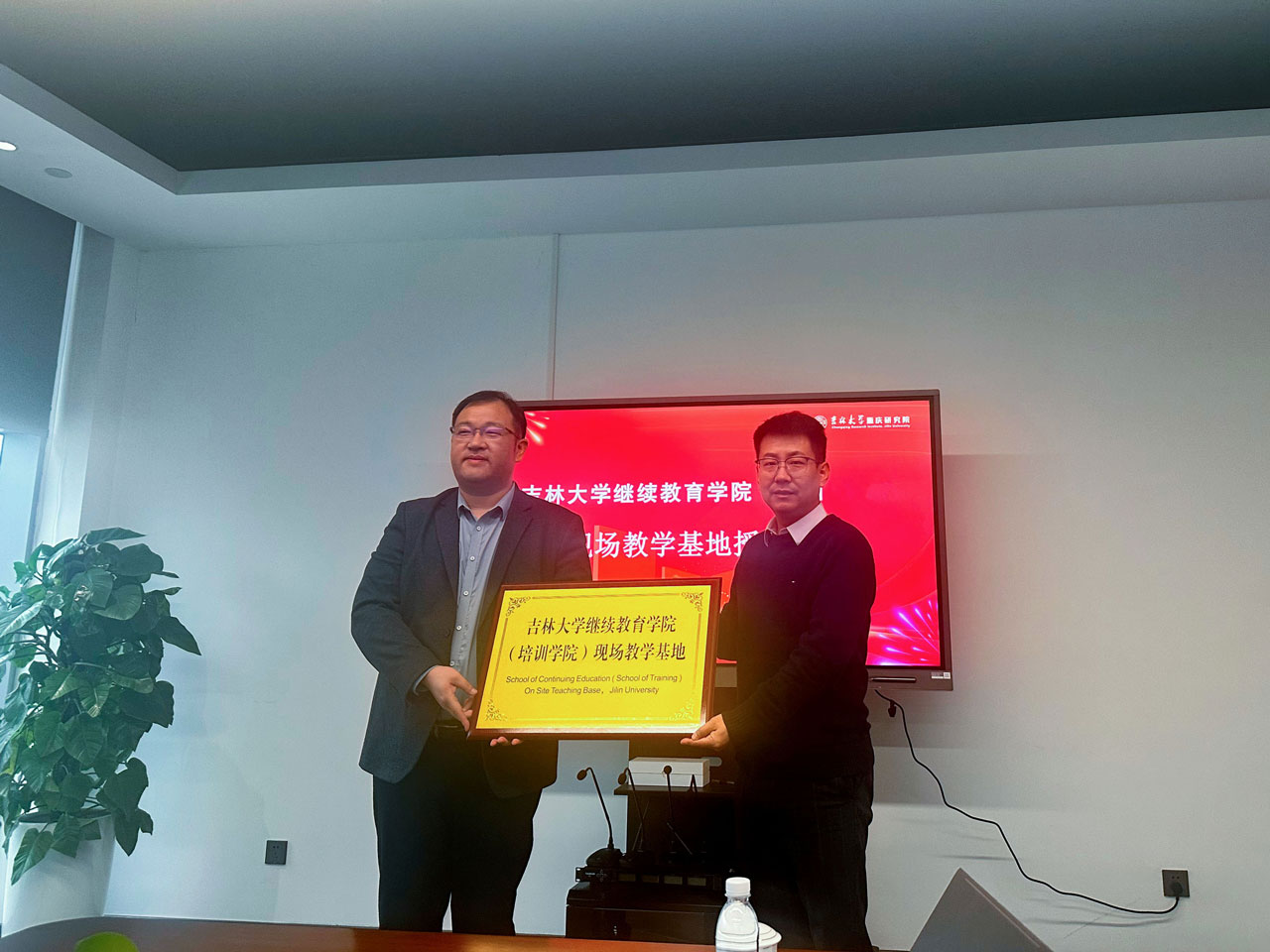 授牌仪式由郑福胜主持。王瑞将镌刻“bevictor伟德继续教育公司(培训公司)现场教学基地”的铜牌授予赵敏。