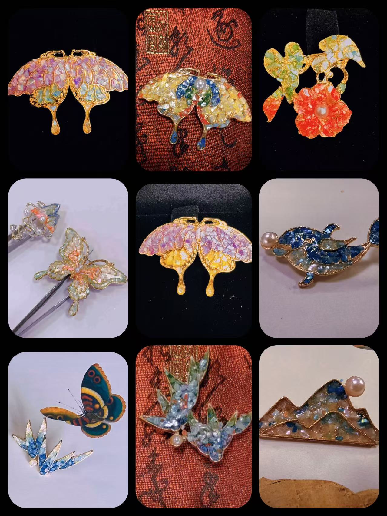 本次活动以胸针为载体,根据画面需要镶嵌螺壳、海贝薄片,制作专属螺钿胸针。活动现场,专业老师首先讲述“螺钿”非遗工艺的由来、历史和工艺特点,让参与者对“螺钿”产生初步的认识;在老师的指导下,大家选取不同颜色、形状的螺钿片和胸针图案,精心设计和制作,呈现出花鸟鱼虫、山水人物等独一无二的专属胸针。