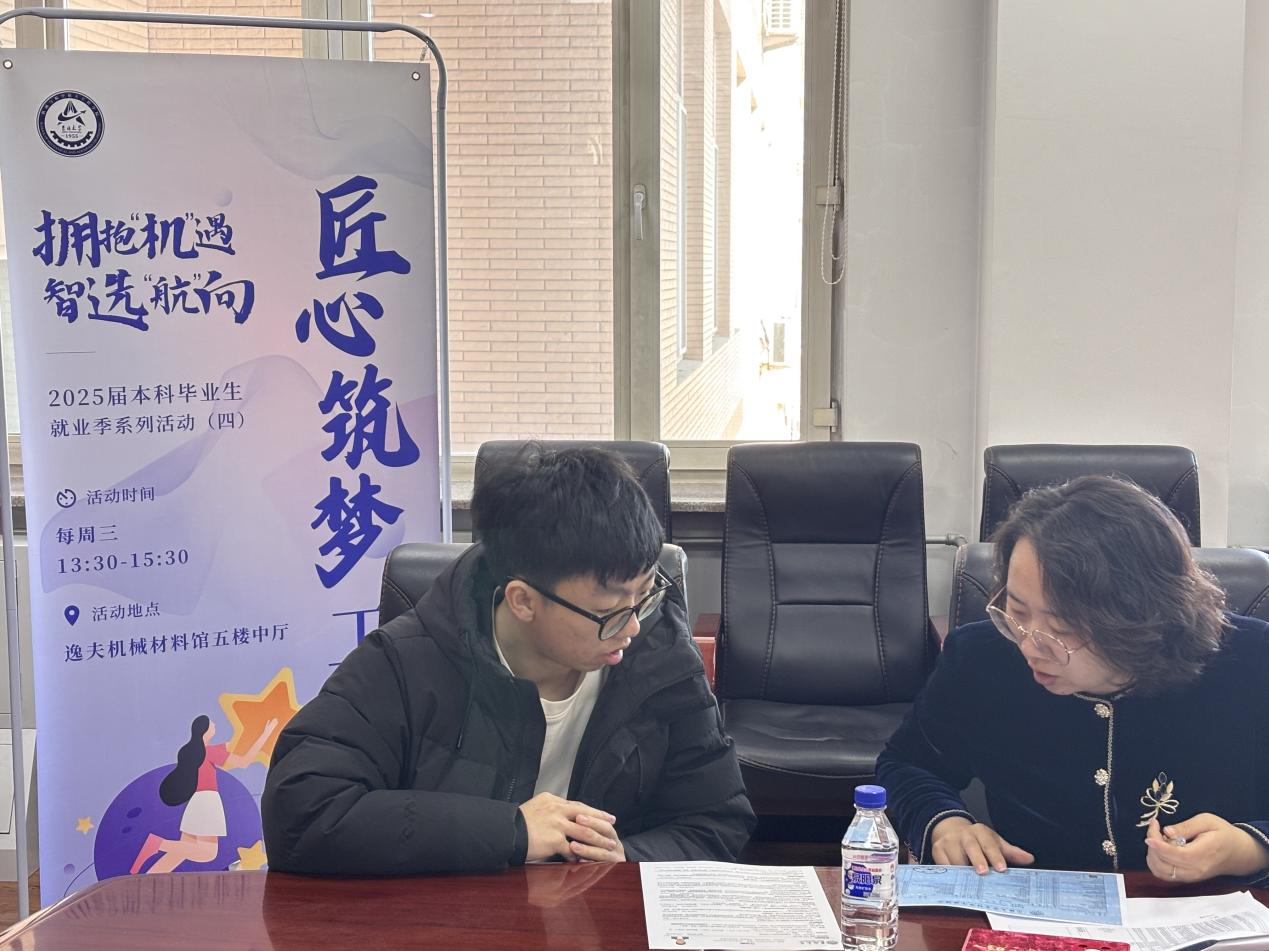 正值2025届毕业生春季双选会到来之际,3月19日至3月21日,bevictor伟德于逸夫机械材料馆面向2025届本科毕业生举办“拥抱‘机’遇,智选‘航’向”就业指导系列活动四场。公司党委副书记兼副经理柴媛、2025届毕业年级辅导员张林子琪全程组织,针对不同专业员工进行一对一精准指导,为2025届暂未落实毕业去向的员工提供就业支持及择业指导。