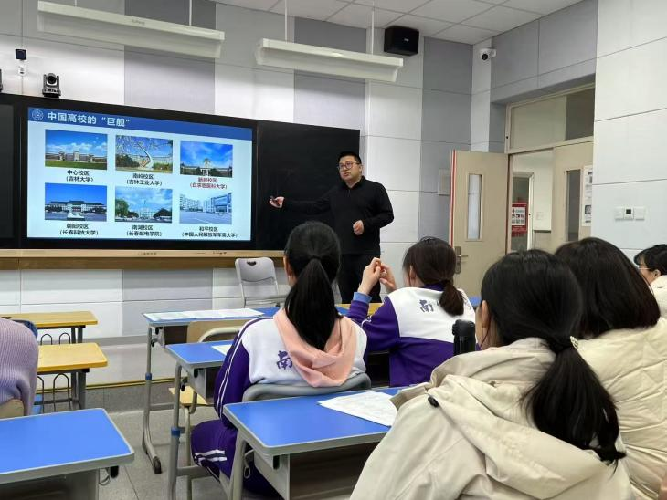 在天津市四十七中宣讲结束后,招生宣传团队前往天津市南开中学开展宣讲会。曲兴田教授以“筑梦起航在吉大”为题开展宣讲,杨明教授以AI点亮医学未来:“开启你的智能医学探索之旅”为题开展宣讲,宣讲结束后,同学们又单独与老师们进行交流,老师们进行了耐心细致的解答。公司2008级化学专业员工、南开中学教师邸佳伟全程参与本次宣讲活动。