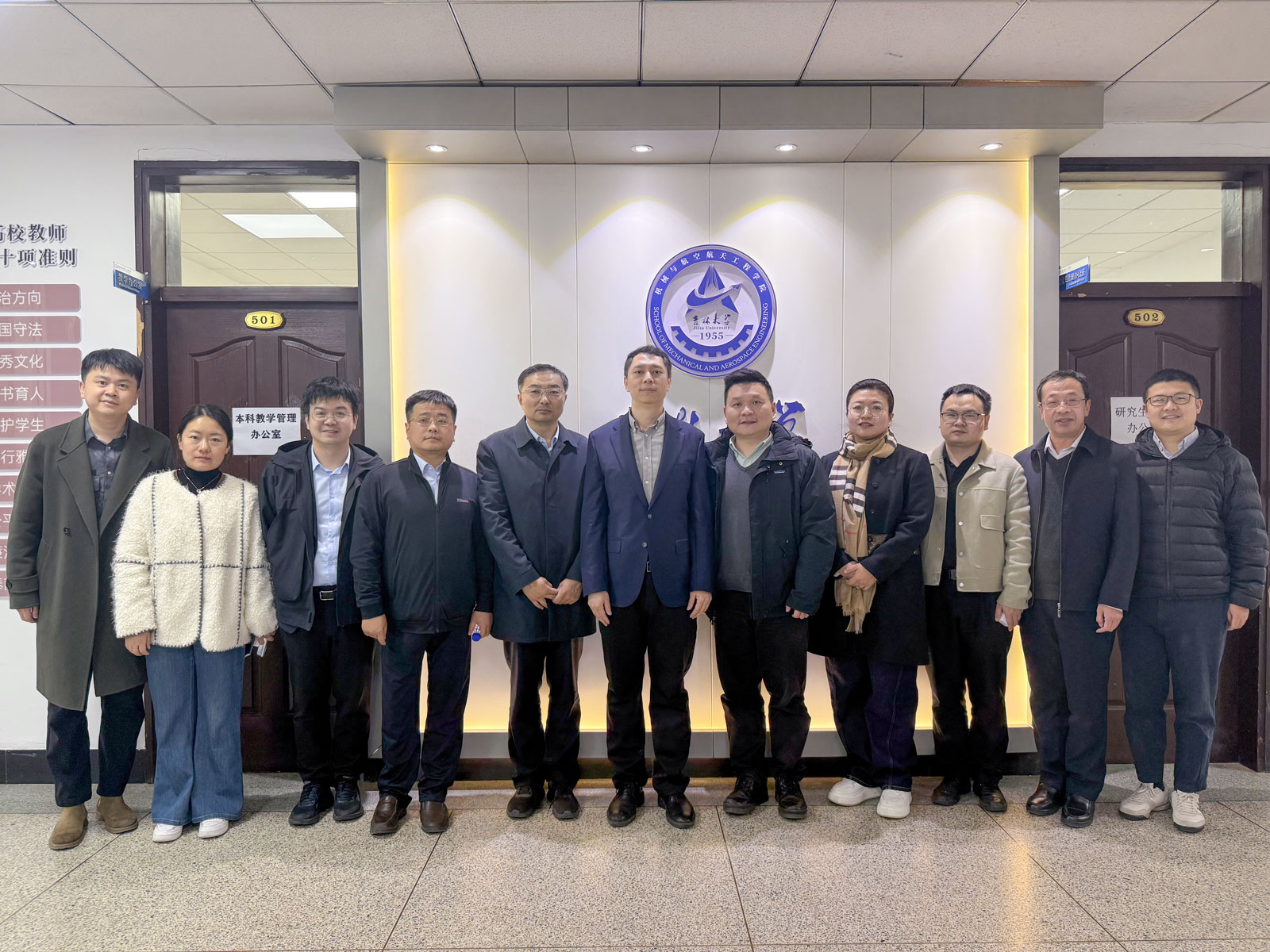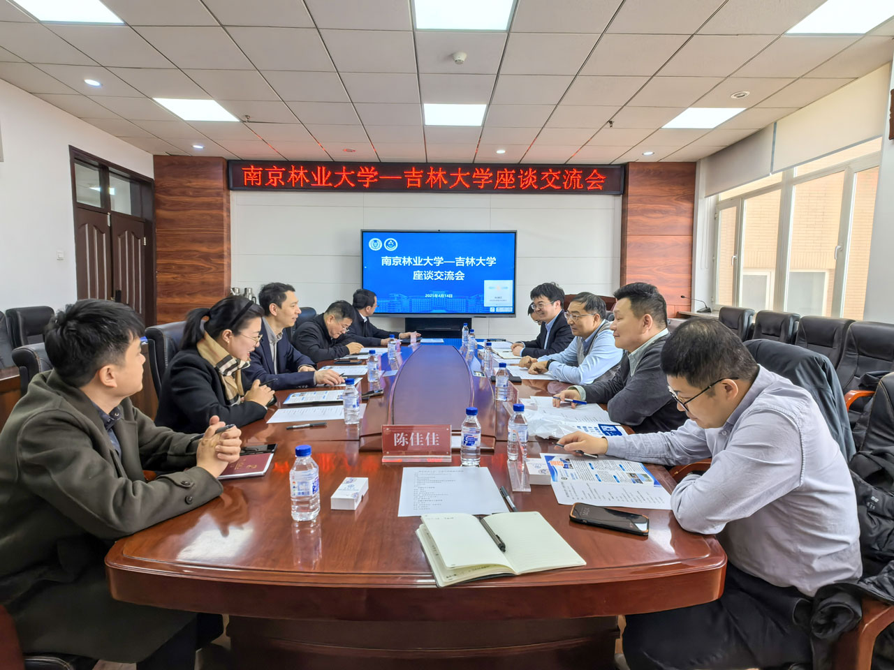 2025年4月14日,南京林业大学机械电子工程公司经理倪超、副经理姜东、林业机械系主任陈青、机械制造及其自动化系主任陈佳佳,中南林业科技大学机械与智能制造公司副经理文韬、教师代表朱付磊一行6人来院洽谈交流。
