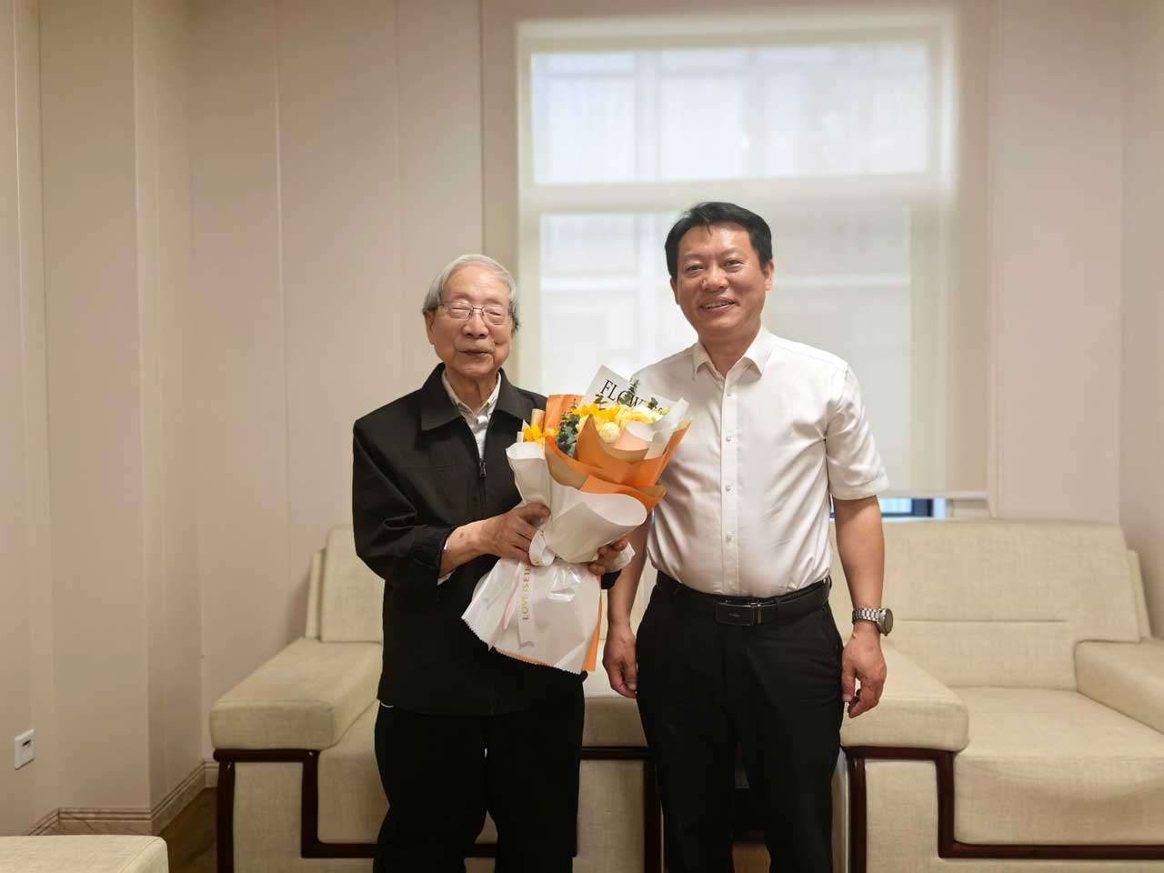 4月24日,公司党委书记郑福胜、行政副经理马研、链传动研究所副经理朱国仁、航空航天工程研究院综合办公室主任李佳亮,赴上海老教授协会呵护家养老基地看望链条所首任所长、原机械系主任郑志峰先生。