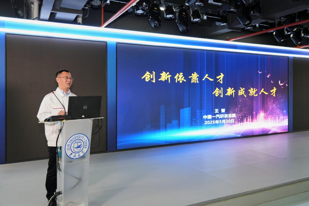 2025年5月20日下午,强国论坛第十三讲在工程训练中心六楼路演厅隆重举行。本次报告会以“创新依靠人才、创新成就人才”为主题,特邀中国一汽研发总院试制部数控班班长、国家级技能大师王智担任主讲嘉宾。公司党委副书记、纪委书记黄莹老师,党委副书记兼副经理柴媛老师,本科生辅导员张富尧老师出席本次会议,会议由工程训练中心教务办公室主任曲晓海老师主持。本次报告会吸引了众多师生到场聆听,现场座无虚席。