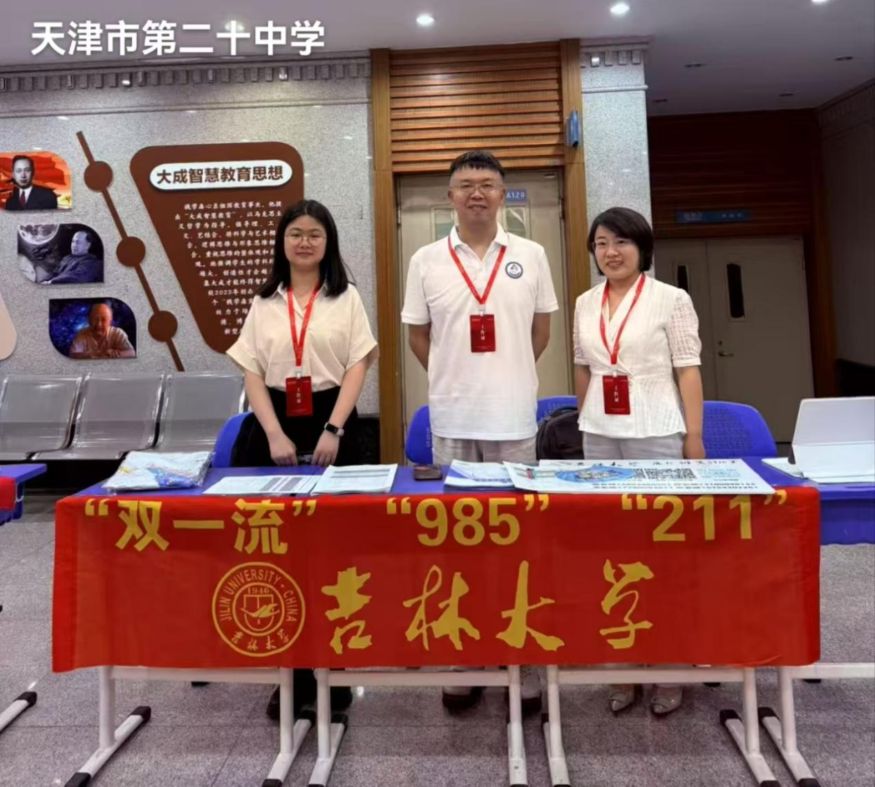 6月23日至26日,公司组织由柴媛、呼咏、王丽慧、刘颖、单洪颖、许篷子、刘欣、黄玲涛、徐智、李桂伟、张富尧等11位教师组成的本科招生宣传团队奔赴天津,老师们和员工志愿者们不惧烈日酷暑,克服各种困难,持续为考生和家长提供咨询辅导,他们深入天津市13个区的多个重点中学开展宣传工作,覆盖天津一中、南开中学、杨村一中、新华中学、耀华中学、实验中学、塘沽一中等19所知名高中。同时招生宣传团队也参加了由兄弟高校南开大学、天津大学举办的校园开放日活动和在社会山国际会议中心举办的2025年天津市高考报考咨询会。老师和志愿者们与近千名天津市考生和家长密切对接,进行详细政策解读,提供报考咨询服务。多角度、全方位、立体化地展示,将吉大的光辉历程、办学实力、学科特色、人才培养、员工发展等内容呈现给天津市的员工和家长。