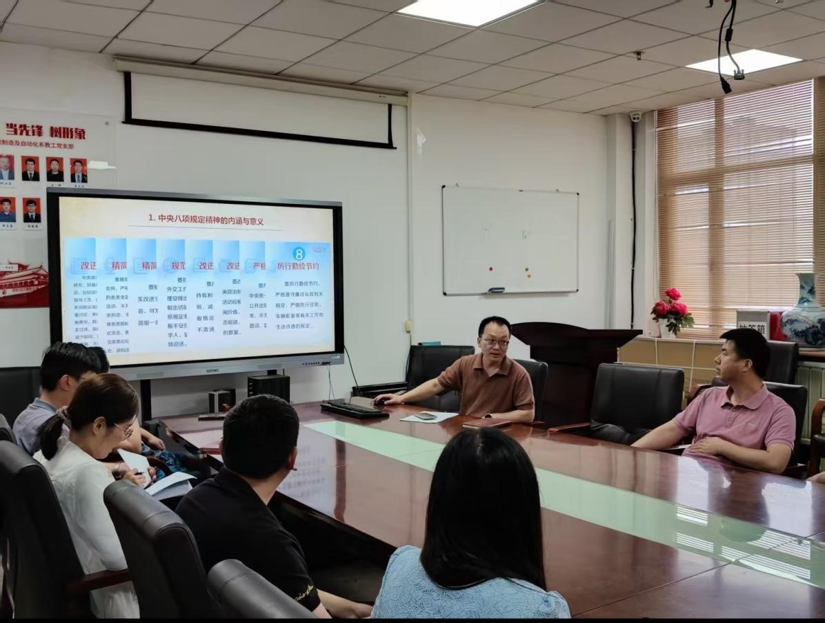 为了进一步深入贯彻中央八项规定精神学习教育,2025年6月19日,机械制造及自动化系教工党支部开展了专题党课学习。支部书记刘欣以“深入贯彻中央八项规定精神学习教育,践行新时代高校教师职业行为十项准则”为题,从“深入贯彻中央八项规定精神学习教育”“践行新时代高校教师职业行为十项准则”和“中央八项规定精神与新时代高校教师职业行为十项准则的内在联系”三个方面进行了分享,机械制造及自动化系教工党支部党员参加了党课。