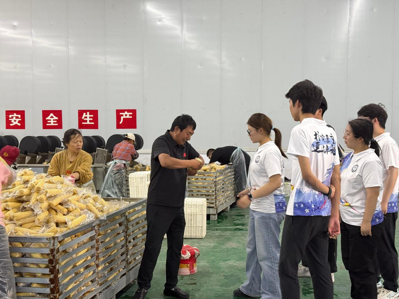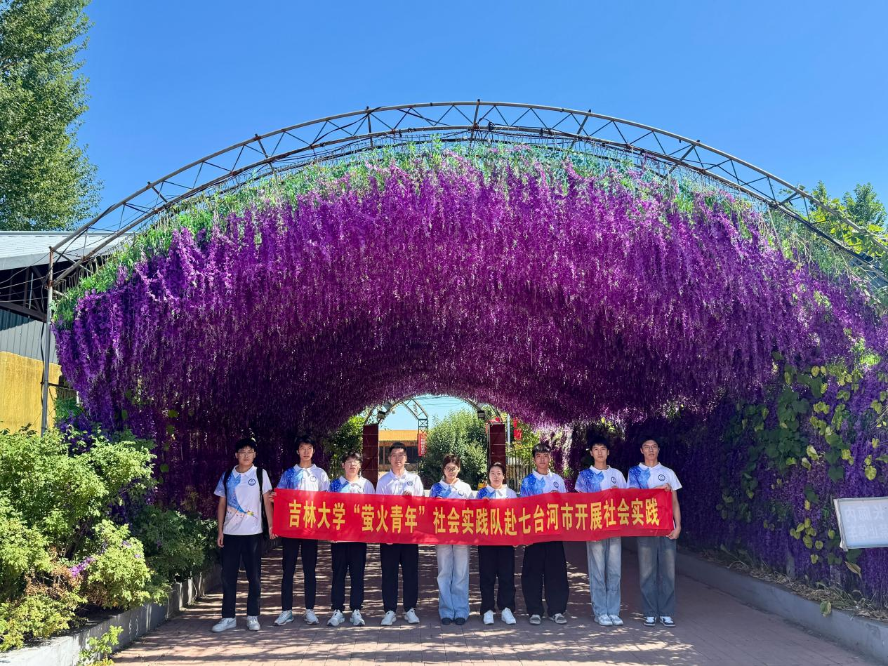 8月15日上午,实践队前往青山乡奋斗村,探寻这座中国美丽休闲乡村、勃利县十佳村的转型奥秘。奋斗村党组织书记、全国劳动模范田作林介绍道,作为“网红村”,奋斗村以产旅融合破题乡村振兴,打造集葡萄采摘、日光温室、民宿旅拍、冰雪乐园于一体的田园综合体,每年吸引众多游客前来休闲度假。团队成员们漫步村中,与田书记一道参观生产车间,体验采摘乐趣,探讨电商产业瓶颈,展望未来发展契机,体会奋斗村从煤城资源型转型到文旅多元化绽放的华丽蜕变。