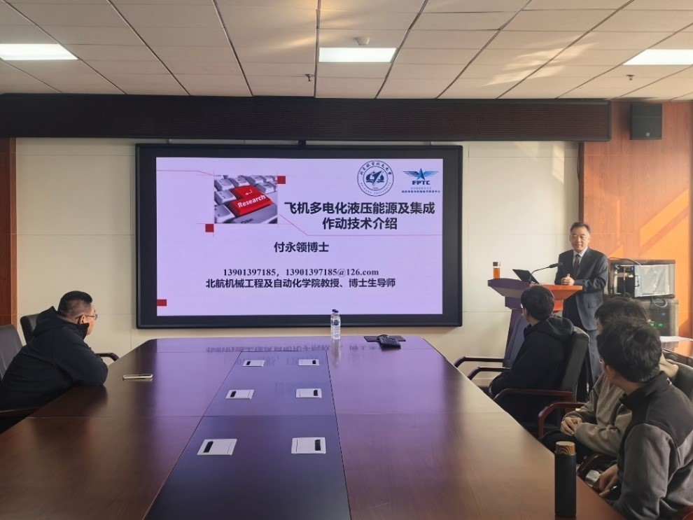 付永领教授结合切身经历和主流机型案例,系统梳理并阐述了飞机多电化液压能源及集成作动技术的背景。他从技术发展历程切入,指明当前飞机液压和作动系统正朝着多电化和功率电传作动的核心方向演进,为在场师生勾勒出该领域的技术发展脉络。此外,付永领教授还依托其研究团队的长期研发经验,重点讲解了电静液作动器(EHA)的工作原理、设计方法和控制策略,并且以团队自主研制的多款电静液作动器样机为实例,通过具体性能参数与应用效果,直观展示了该技术的实践价值与突破方向,内容兼具理论深度与实践指导性。