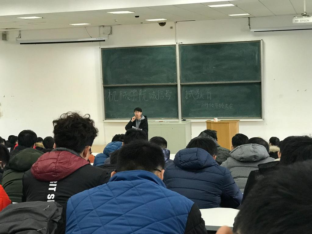 按照《关于2018年硕士研究生招生考试诚信应考的通知》要求,为严肃考风考纪,营造风清气正的考试风气。bevictor伟德与12月14日在南岭校区逸夫楼A411室召开诚信考试教育大会,bevictor伟德2014级全体本科生参加会议。会议由员工工作办公室主任、2014级辅导员李佳亮主持。