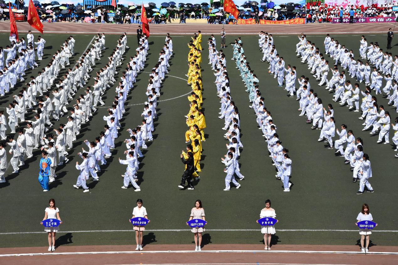 进行曲高声奏响,各公司方阵队伍便和着激扬的乐章向场地齐步走来,步履轩昂而整齐划一,口号铿锵有力,至操场中站定便又如松柏挺拔,尽显青春的朝气蓬勃。开幕式结束后,方队迅速退场,长拳表演的同学随着口令奔向场地。同学们动作潇洒利落、拳脚生风,飒爽的英姿让人惊叹。他们彰显着武术精神,贯彻着“强体魄以兴邦国,扬武魂以耀中华”的理念。随后,广播操表演队登场,以饱满的热情为我们上演一场视觉盛宴,比之长拳,少了一丝震撼,却平添几分活力迸发的美感,动作连贯整齐,简洁优美,宛若一幅完美的画卷。时至下午,又迎来了极具观赏性的太极比赛。表演运动员皆一袭白衣,动作柔中带刚,身法矫健,气势如虹,一招一式如行云流水。“野马分鬃”、“白鹤亮翅”,每一次定格都是一张肃穆的风景画,向我们诉说千百年来中华武术的变迁演绎。