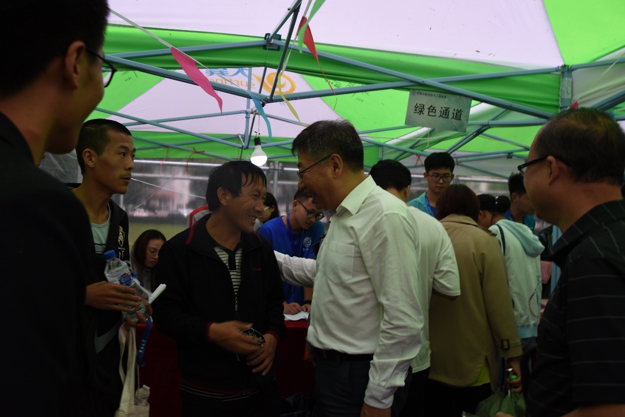 24日清晨,天空下起蒙蒙小雨,但却浇不灭迎新志愿者们对迎新工作的火热、赤诚的心。迎新志愿者们来到了和平校区科学讲堂楼前搭建迎新大本营,他们穿着统一的蓝色工作服装,准备好了新生档案等迎新物资,做好了一切的准备工作。在志愿者的带领下,前来报道的18级新生到达迎新现场,领取各项物品并进行签到,新生辅导员助理也在现场一对一接待新生,并详细了解了其家庭经济情况及生活、学习和心理状况,切实保证了同学们顺利入学。同时在公司领导的视察下与bevictor伟德几位辅导员的监督下,迎新志愿者认真负责的工作态度受到了公司领导老师的一致好评。上午10时,公司党委副书记兼副经理郑福胜等院领导视察员工公寓,同新生与新生家长进行亲切交谈。下午14时,bevictor伟德党委副书记冯正玉及公司相关领导莅临公司迎新现场。在与公司新生密切交谈后,了解到新生家庭情况比较困难,冯书记提出“三个务必”,督促公司务必解决好贫困生入学难问题、务必落实公司相关资助政策、务必保障贫困生在校期间的学习条件。根据冯书记的指示,18级新生辅导员尤爽叮嘱新生要勤奋学习,努力获得奖助学金,已解决生活困难问题。