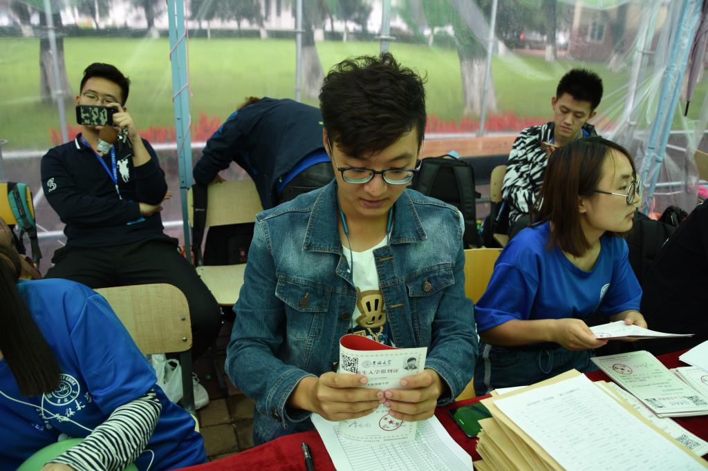 在新生报到的高峰期,接待台前排起了长长的队伍,面对络绎不绝的新生,前台工作的志愿者们满怀热情,始终保持良好的态度,为新生们认真地办理各类手续——从收取各项费用到发放校园卡及银行卡、从引导新生领取寝室钥匙到分配志愿者带领新生和家长入住公寓,整个接待过程高效而有序,大大节省了新生与家长等待的时间。在接下来的几个小时里,前台工作人员一直奋斗在工作前线,办理各类手续的同时,工作人员也亲切的和家长和新生进行交谈,为他们排忧解难。当被问及是否劳累时,他们纷纷表示,虽然工作很辛苦,但能为学弟学妹们付出他们感到很开心。在对家长和新生的访问过程中,家长和新生也对前台工作人员的服务赞不绝口。