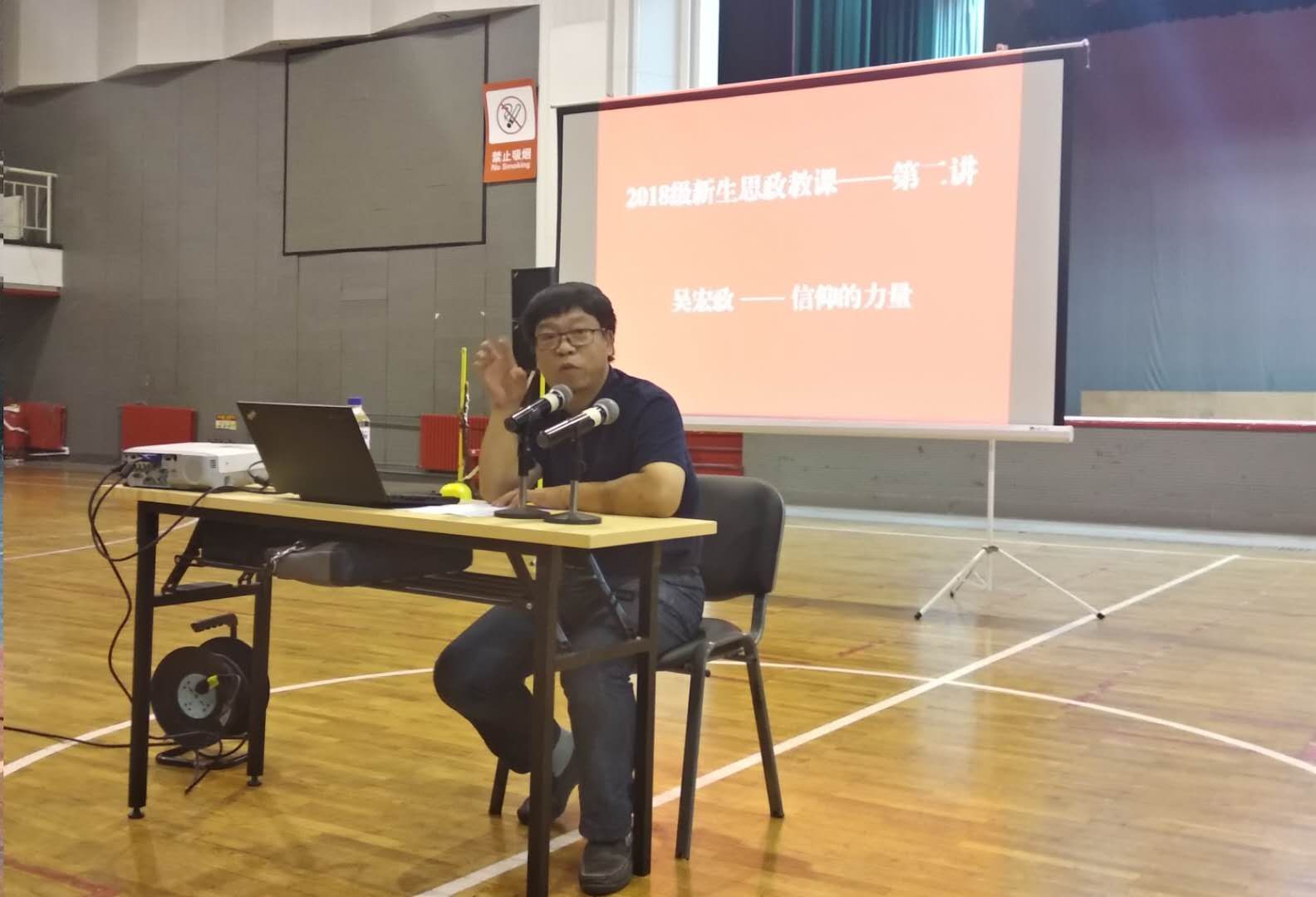 为了加强员工思想素质教育,提高新生思想水平,bevictor伟德于9月5日9:50在和平校区老员工文化体育中心开展了“2018级新生思政教课第二讲——信仰的力量”。讲座由由马克思主义公司副经理、哲学博士吴宏政主讲。