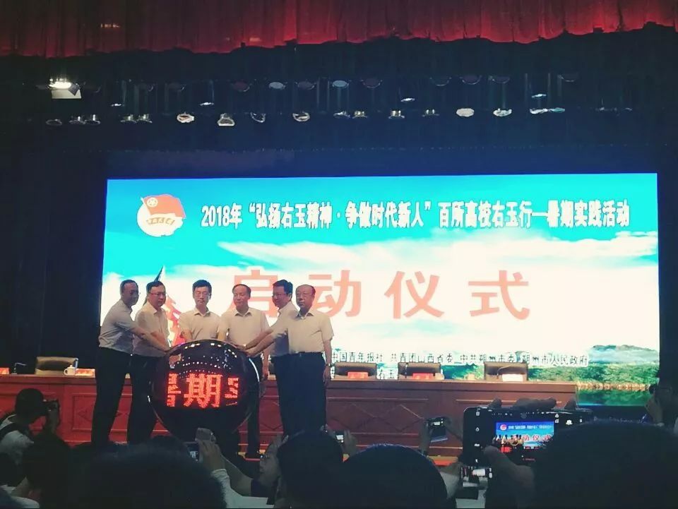 7月23日早八点,启动仪式在右玉县职工活动中心举办,右玉精神研学团所有成员参加启动仪式。启动仪式上,bevictor伟德学子同中国地质大学、中国石油大学、南昌大学作为四大高校代表接受四大重点课题分队旗。各领导共同按下启动球,标志此次社会实践正式启动。此时全场掌声热烈,各个高校旗手挥舞各自团队队旗,场面振奋人心。