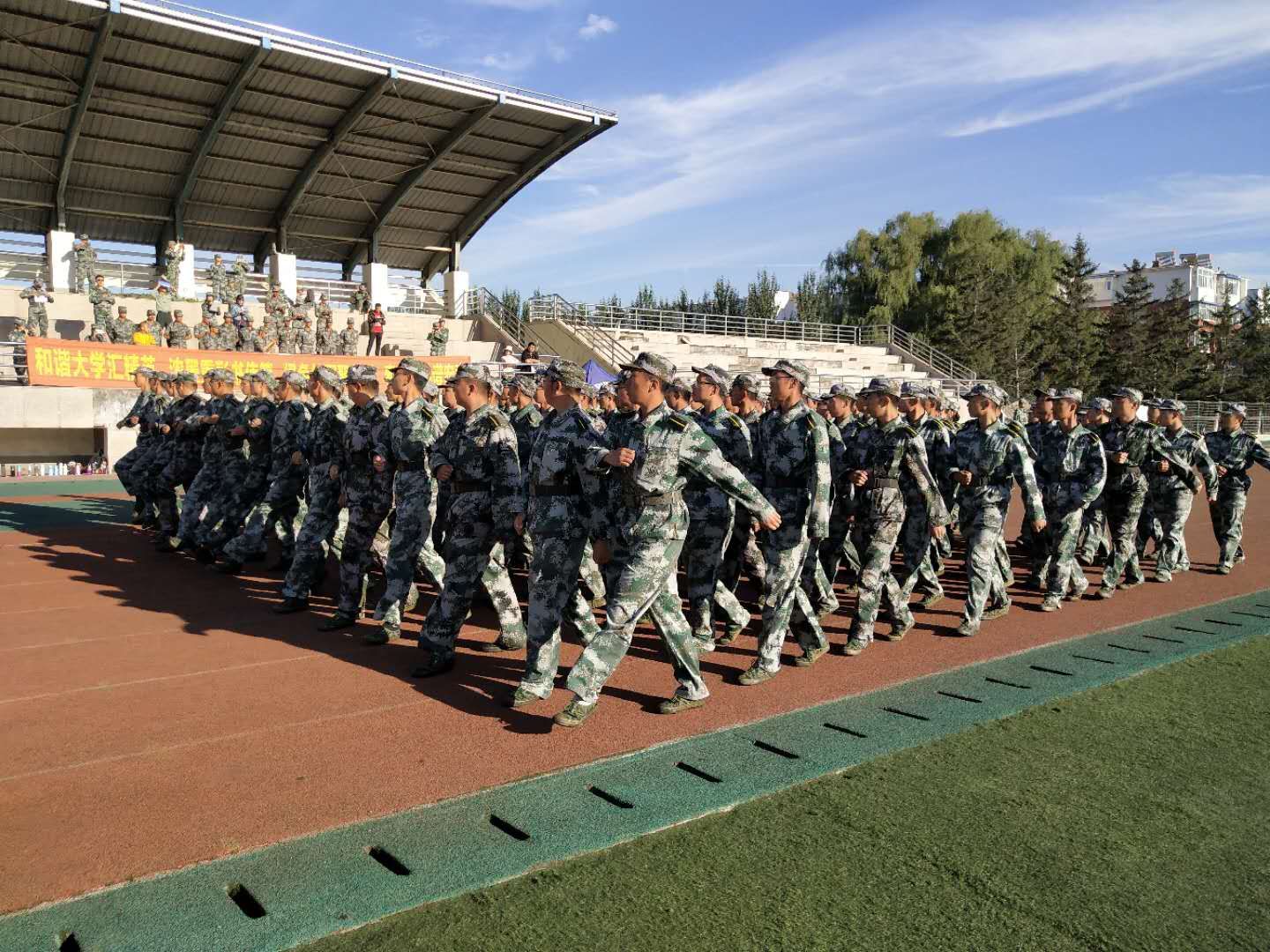 为检验公司员工军训成果,发扬刻苦训练的精神,军训旅九营于9月19日下午在和平校区训练场举行了分列式会操汇报表演。九营全体教官带领各连队到场参演,bevictor伟德2018级辅导员尤爽到场观摩。