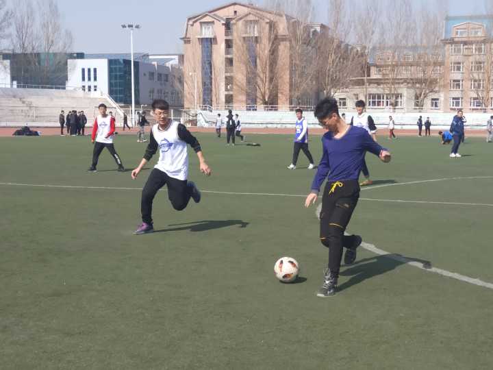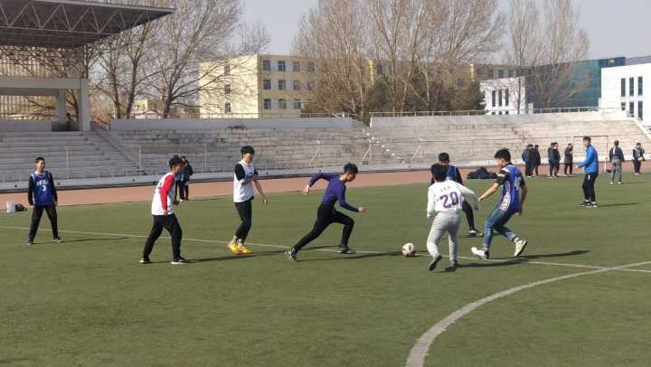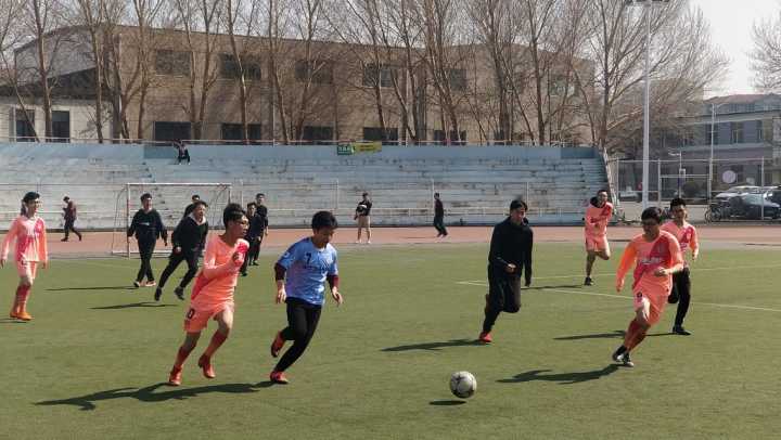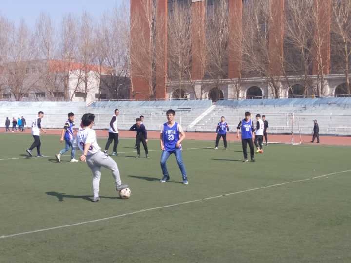 天气回暖,草长鸟翔。场上,各班运动员早已紧张地做着各项赛前热身项目。随着裁判员和远动员依次入场,比赛随即吹响开始的哨音。赛场上,1班群雄逐鹿,凭借快速的进攻效率先后斩获2枚进球,2:0挺进1/8决赛。中间场5班以1:0的微弱优势胜出。最边场战况尤为激烈,8班发起数次攻门,观众的心也被拽着扯着随球四窜。场上战况激烈,多次擦枪走火,意外碰撞层出不穷,球场上的摔跤十分常见,但来自队友的温暖关心也马上让摔跤的疼痛化为前进的动力。下半场刚开始,身穿蓝色球服的3班前锋就已带球突围,球从对方守门员绝望的双手前奔进门内。接下来的比赛里,双方你来我往,各有多次得分机会,但都被对手巧妙化解,最终比分定格在1:0,3班险胜。