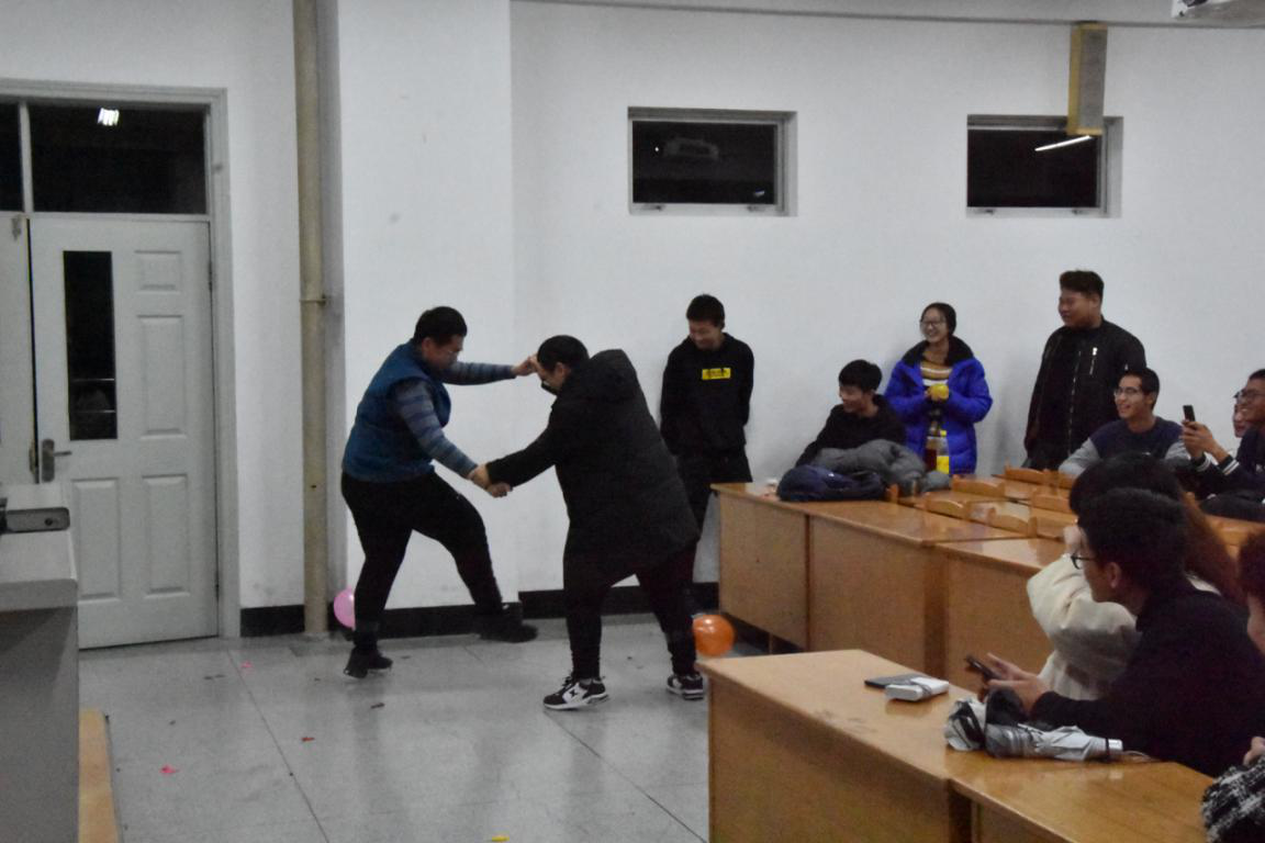 活动进行到游戏环节,游戏是由七个人互相踩腿上绑着的内置心理小问题的气球,被踩掉气球的人需要回答上面的问题。同学们兴趣高涨,现场气氛达到高潮。随着游戏的结束,整个演讲也接近了尾声,贴心的心语工作部志愿者为在场的同学准备了小礼物。
