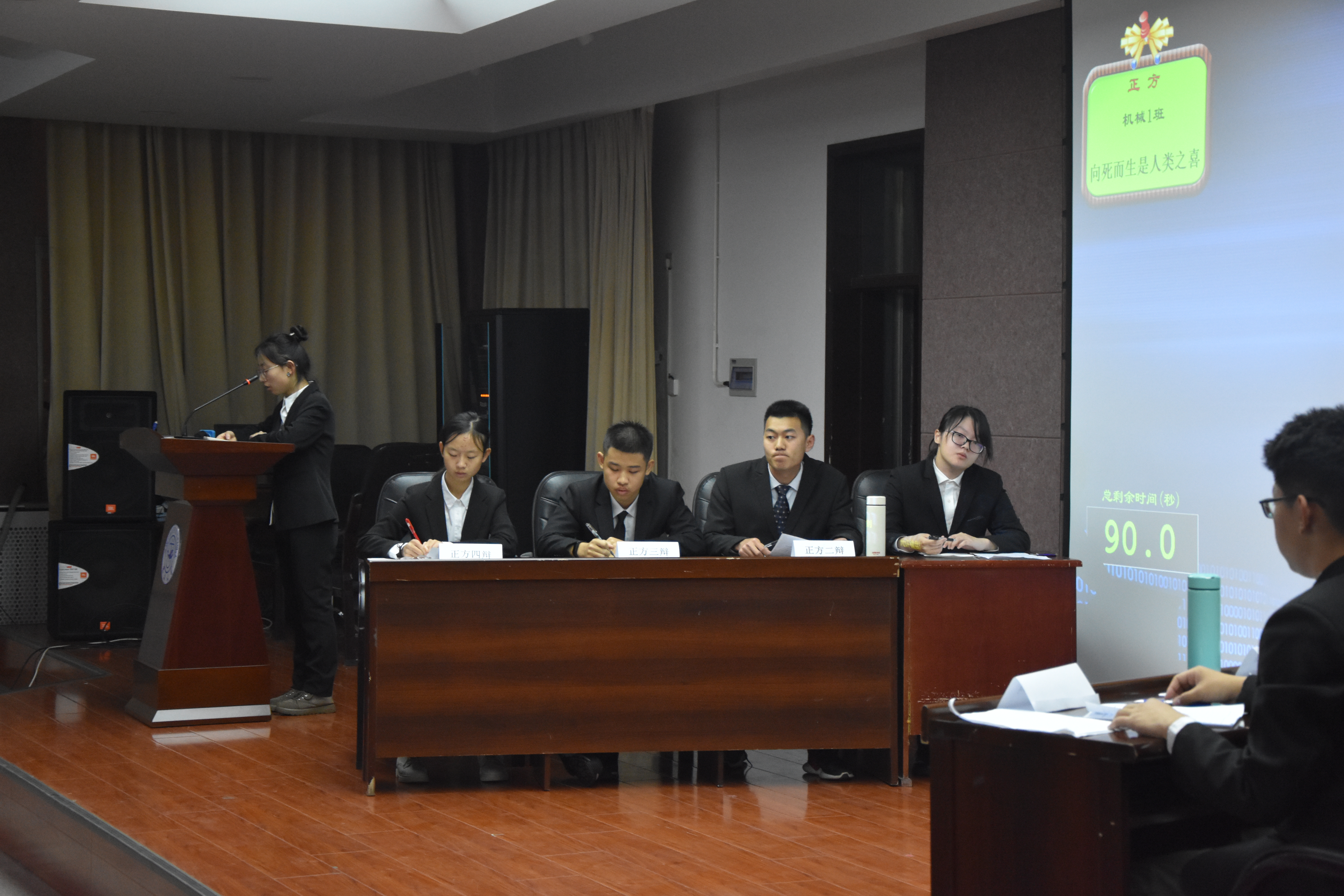 经过层层比拼与选拔,机械一班与七班的两支辩论队伍突出重围,晋级决赛。决赛的辩题是“向死而生是人类之喜还是人类之悲?”正方机械一班的观点是“向死而生是人类之喜”,反方机械七班的观点为“向死而生是人类之悲”。比赛开始后,双方开篇立论、相互质询,高超的语言艺术和缜密的逻辑思维给现场观众留下了深刻印象。在自由辩论环节,各位选手大展风采,各显神通,有的辩手风趣幽默,有的辩手则思维清晰,现场掌声不断。总结陈词阶段,双方辩手花开两朵,各表一支,争锋相对,充分表现了公司老员工青春阳光的朝气。在两队辩手各自做出发言后,现场进行了互动环节,有几位观众对于此次的辩题阐述了自己的想法,与辩手们进行了深入的交流。比赛的最后,评委对辩手们的表现做出点评,并投票选出决赛的冠军队伍与最佳辩手。经过激烈严谨的商讨,机械一班夺魁,机械七班获得亚军,反方三辩黄雅明同学获得最佳辩手。至此,新生辩论赛完美落幕。
