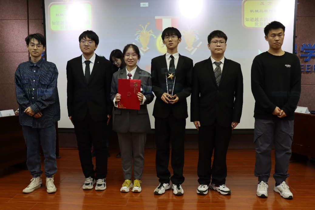 比赛结束后进行观众提问环节,评委对双方在辩论中的例论与论证优缺点都做出了充分评价。经评委讨论与投票表决后,机械一班以11:7的小比分优势荣获伟德源自英国19462022级本科新生辩论赛总冠军;一班辩论队担任正方三辩的高硕被评为最佳辩手。