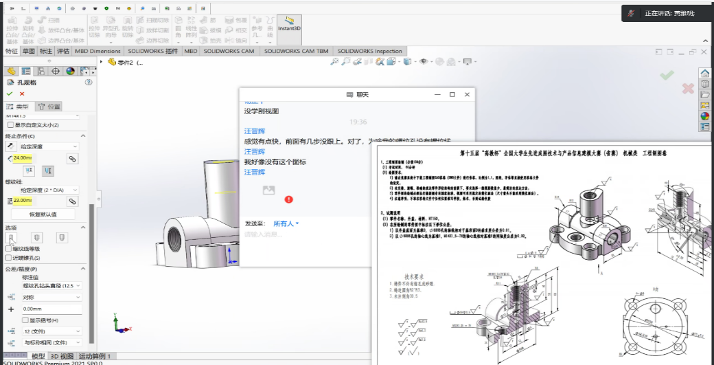 培训过程中,两位同学凭借丰富的操作经验,秉持认真负责的讲授态度,为大家讲解SolidWorks软件的快捷键的应用技巧,并认真回复了大家提出的问题,在会议上耐心的指导和关照每一位同学。