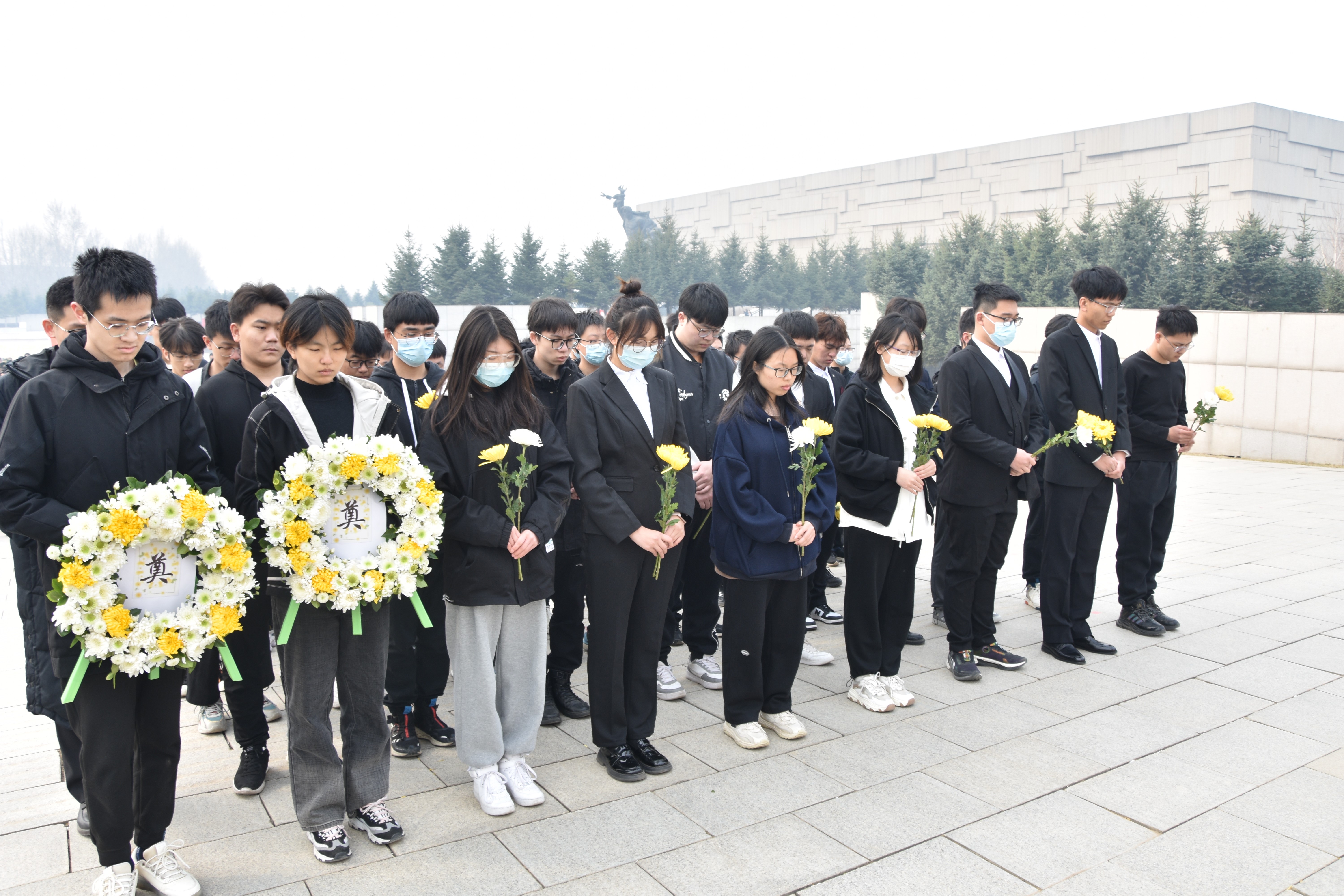 2023年4月5日上午9:00,大巴抵达长春市革命烈士陵园。2021级员工代表李赫同学在纪念碑下做祭扫演讲,瞻仰“长春革命烈士纪念碑”,全体默哀三分钟。