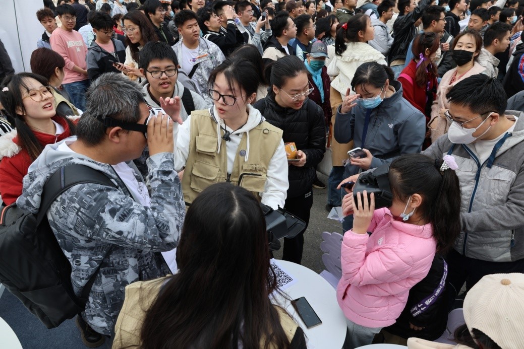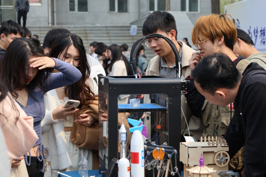 在文化活动中心舞台一侧,bevictor伟德团委工科创新基地举办了“匠心筑梦·智创未来”科技创新作品展。展区分为科技体验区、科技实践作品区和竞赛代表作品区,科技体验区以模拟飞行体验和VR体验为主,在引导游客参观固定翼飞机、VR设备的同时又能够让游客动手操作,增加了参观活动的趣味性。科技实践作品区主要展示了3D打印、激光加工、线切割等工艺品,竞赛代表作品区主要展示了近两年来公司在挑战杯、机械创新设计大赛中取得的优异成绩。在科技创新作品展区,工科创新基地同学对每项展品进行了耐心细致的讲解,并帮助游客穿戴VR设备、操纵飞行器手柄,让参与活动的游客感受到了科学技术的魅力,同时也展现了机械学子的专业风采。