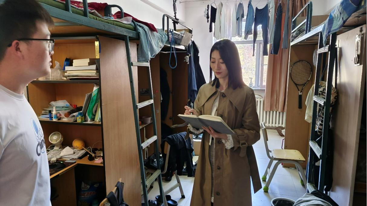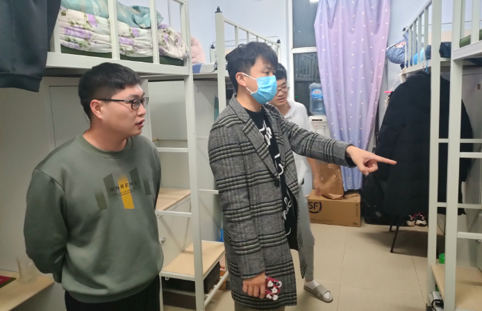 辅导员张瑛在检查中向同学们强调,五一假期是旅游高峰期,部分同学外出游玩,寝室处于无人居住的状态,要注意出门前对寝室进行全面断电,包括充电宝、插座等电器,拧紧消防“安全阀”,筑牢寝室“平安墙”。对于假期期间有人居住的寝室,严禁使用违禁电器,比如大功率电冰箱及发热电器等,一经发现,公司将采取严厉教育。在走访过程中,曲艺就同学们假期安排、近期生活状态与同学们进行了亲切的交流,并祝大家度过一个安全、愉快的五一假期。检查过程师生和睦,交流融洽,将发现的问题一一指出,各研究生们也表示会及时整改,营造一个和睦、文明的寝室氛围。