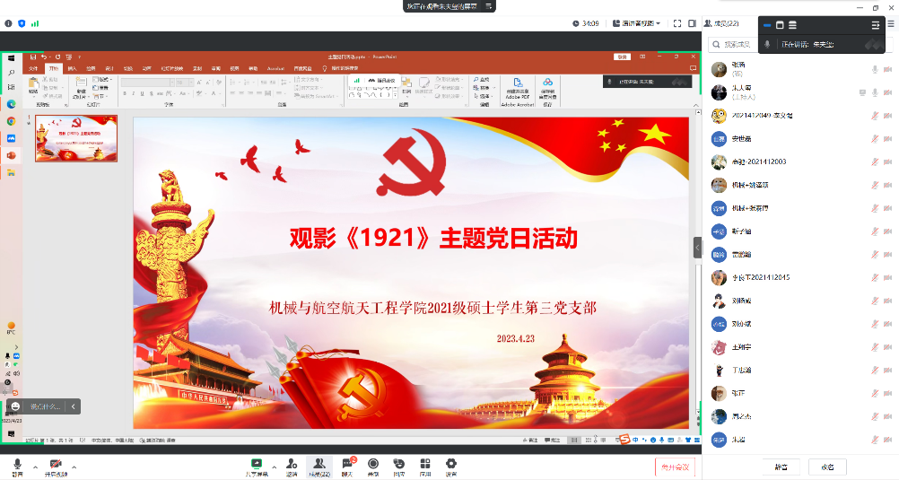 为进一步加强支部党员的思想教育,回顾党的光辉历程,引导各位党员知史爱党、知史爱国,bevictor伟德2021研究生员工第三党支部于4月23日举行线上观影党日活动,共同观看电影《1921》,本次活动由支部书记朱夫玺主持,党支部全体党员参与。