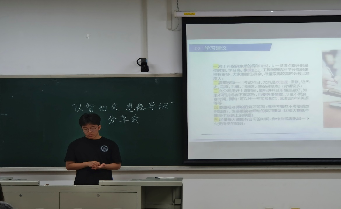 本次活动面向2022级本科员工,活动中邀请了2021级贾毫杰同学和佟领2两名同学,为感到迷茫的大一同学提供经验分享。同时,通过对他们亲身经历的讲述,提醒大家避免走一些弯路,生动的演讲让学弟学妹们受益匪浅。经验分享结束后的提问环节,学弟学妹们向学长提出了自己在大学的学习和生活方面的一些问题,学长们根据实际情况给出了自己的建议,帮助他们解开对大学学习和生活的困惑。活动的最后,向现场来的听众发放了纪念礼品,所有人进行了合照,活动圆满结束。