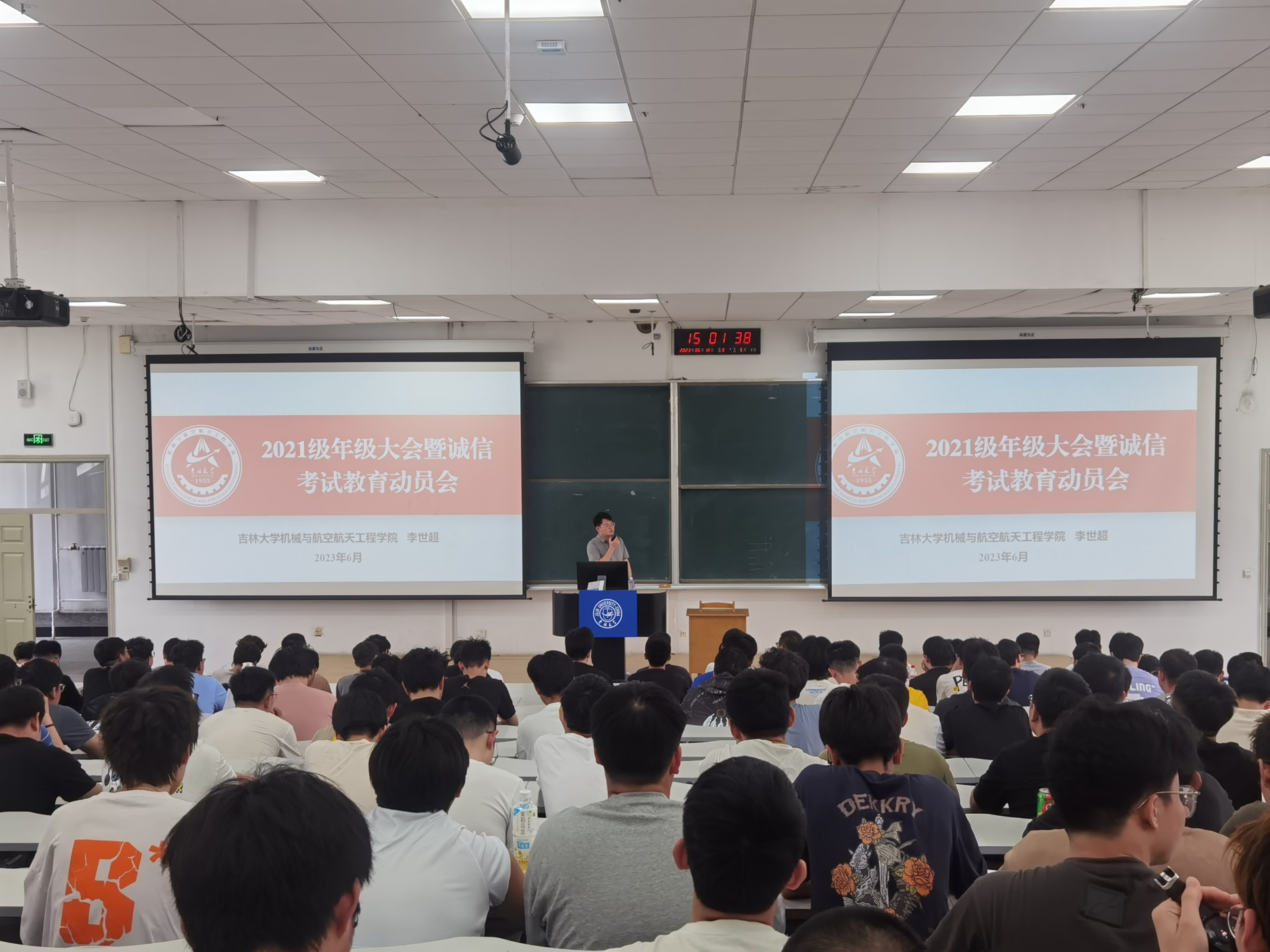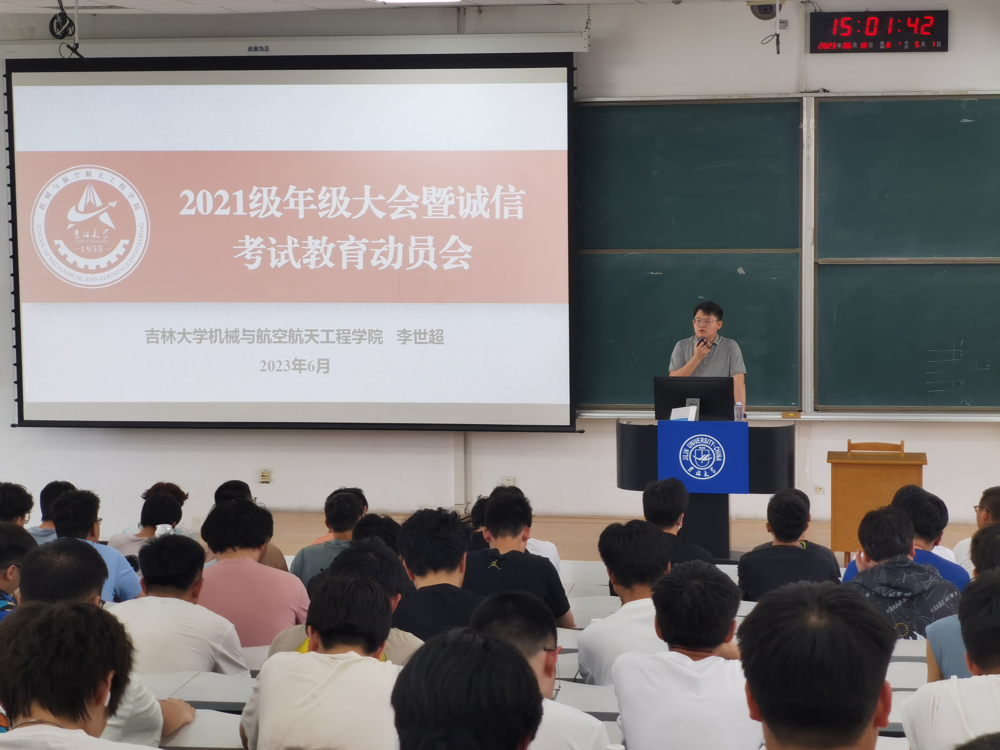 为帮助2021级本科生明确学业规划、营造公平、公正、诚信的考试环境,公司2021级辅导员李世超于2023年6月18日在逸夫教学楼A411教室主持召开年级大会暨诚信考试教育动员会,2021级全体本科生参加本次会议。