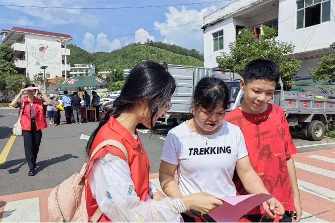 8月2日,在城市社区管理委员会带领下,团队协助上犹宣传部组织的呼吁“零彩礼”宣传视频的拍摄,完成了剧本修改、动作指导、参与演出等多项工作。拍摄团队致力于用短视频这一教新颖的方式向人们宣传新时代思想,打破腐朽封建思想的禁锢。视频在上自媒体平台引起了一定的关注,在打破传统观念、消除封建思想方面发挥了积极作用。8月3日,团队在寺下镇趁逢圩人员密集,进行了移风易俗宣传单的发放,得到了许多居民的好评。