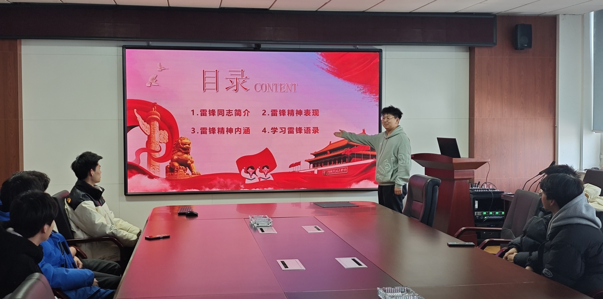 活动中,2021级本科生石文凯同学以“学习雷锋事迹 体悟榜样力量”为主题,带领同学们共同学习了雷锋同志的先进事迹,激励同学们向榜样学习、传承雷锋精神、争做文明使者。2022级本科生郝思博同学结合班级工作实际,向同学们分享了142222班团支部在校内开展爱心服务、帮扶身边困难同学的经验,并鼓励同学们积极了解身边同学所面临的实际困难和合理诉求,互帮互助、共同进步。