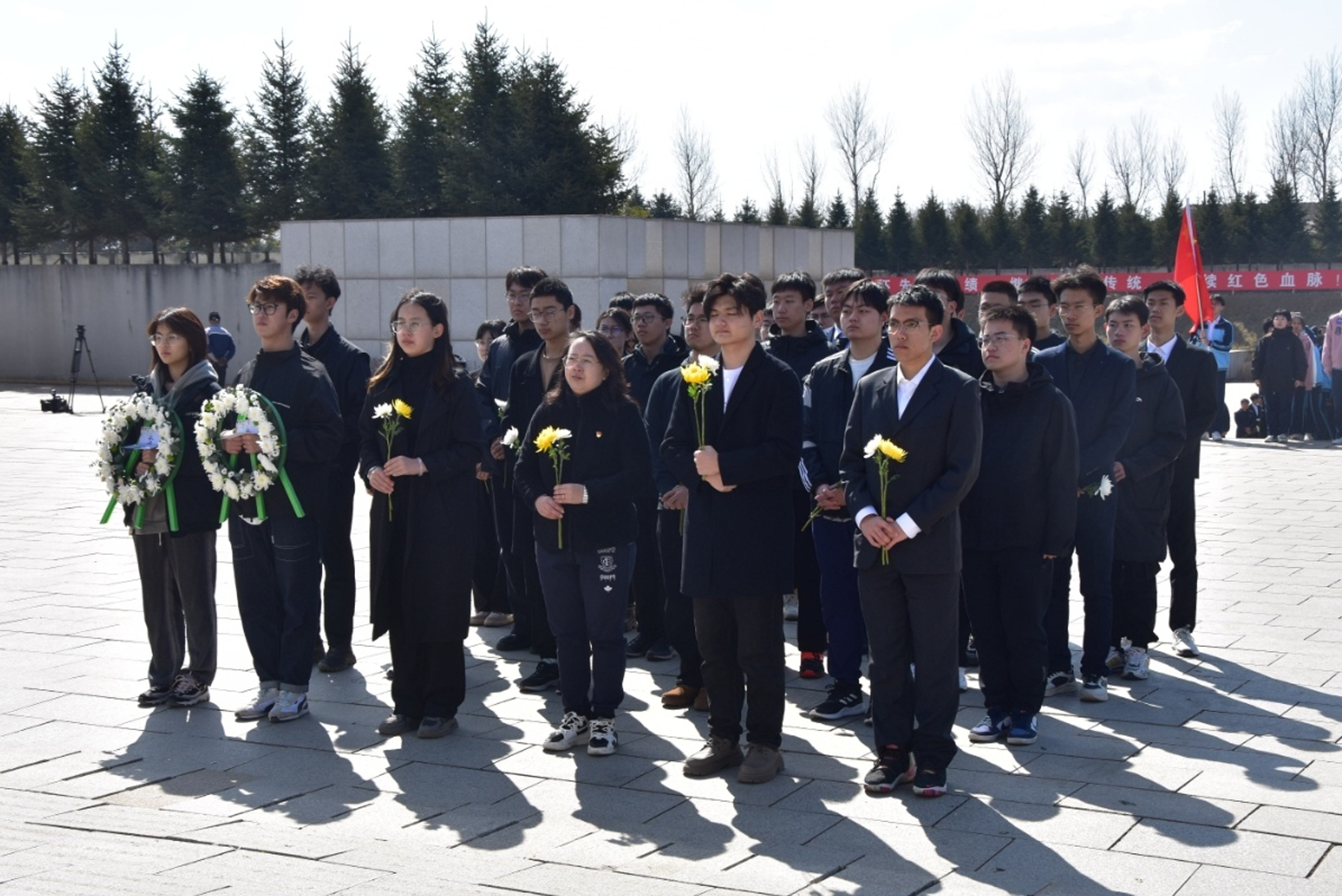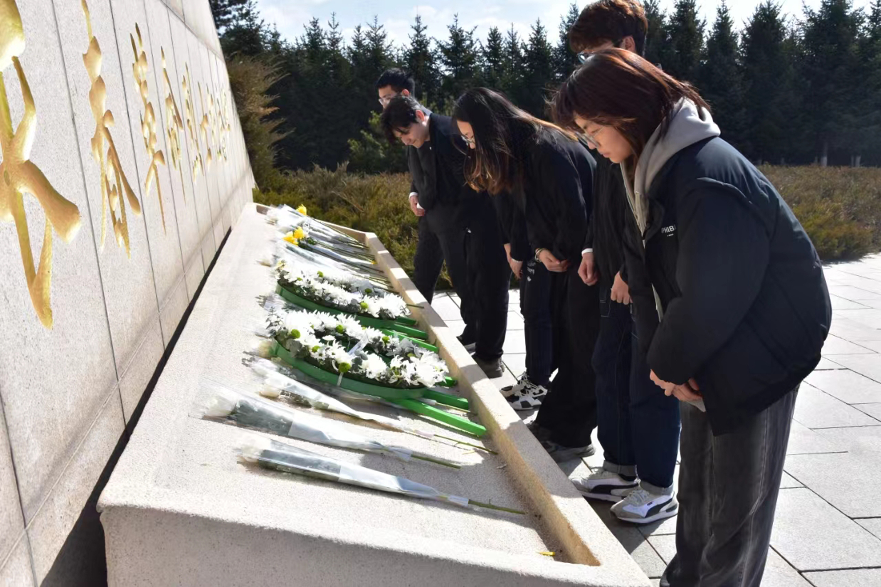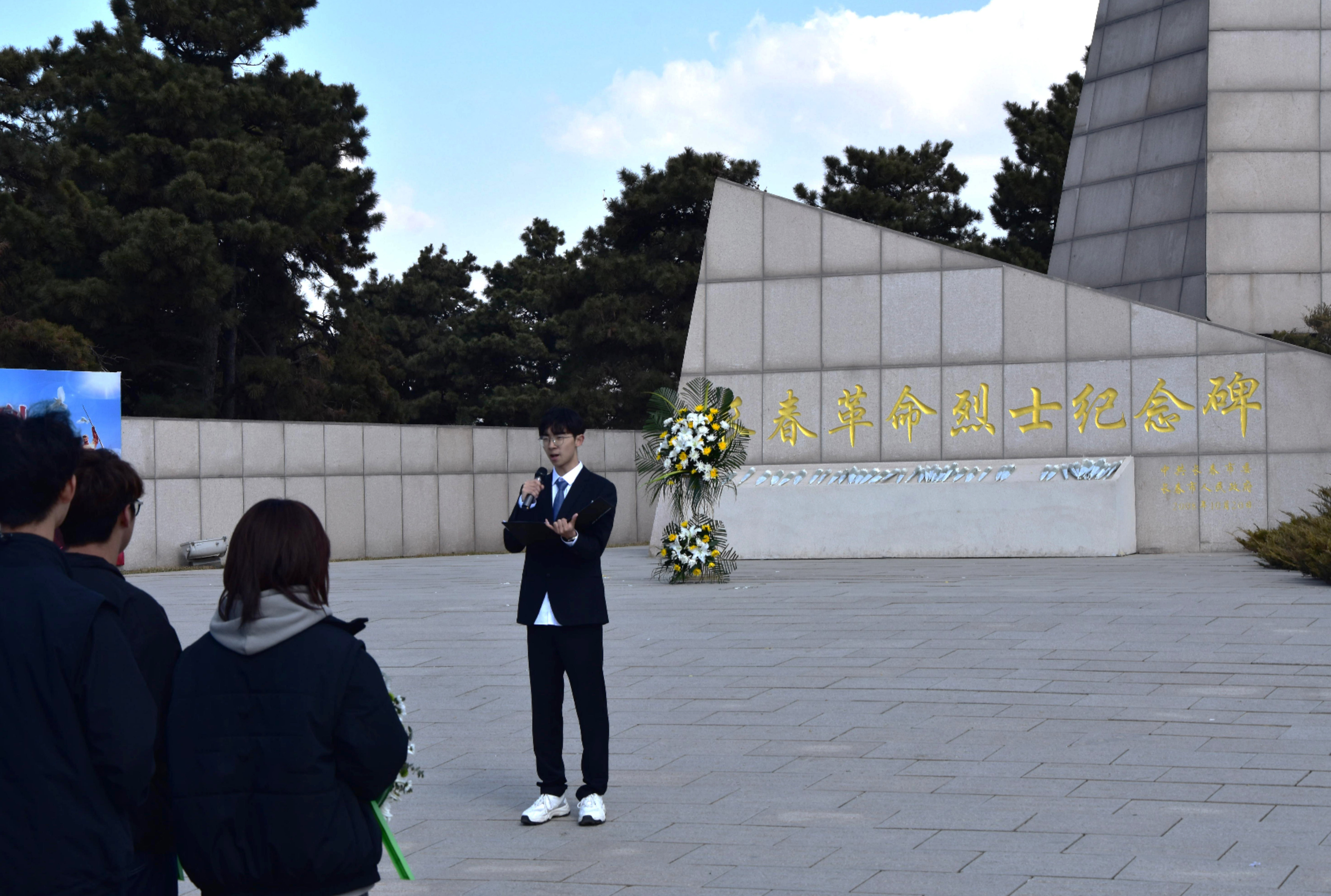 上午十点,2023级徐盟同学作为员工代表在纪念碑下进行了“山河已无恙,致敬英烈再奋发”主题演讲,悼念革命先贤。之后,同学们在长春市革命烈士纪念碑前默哀一分钟。数十名同学手持菊花依次献花表达哀思。