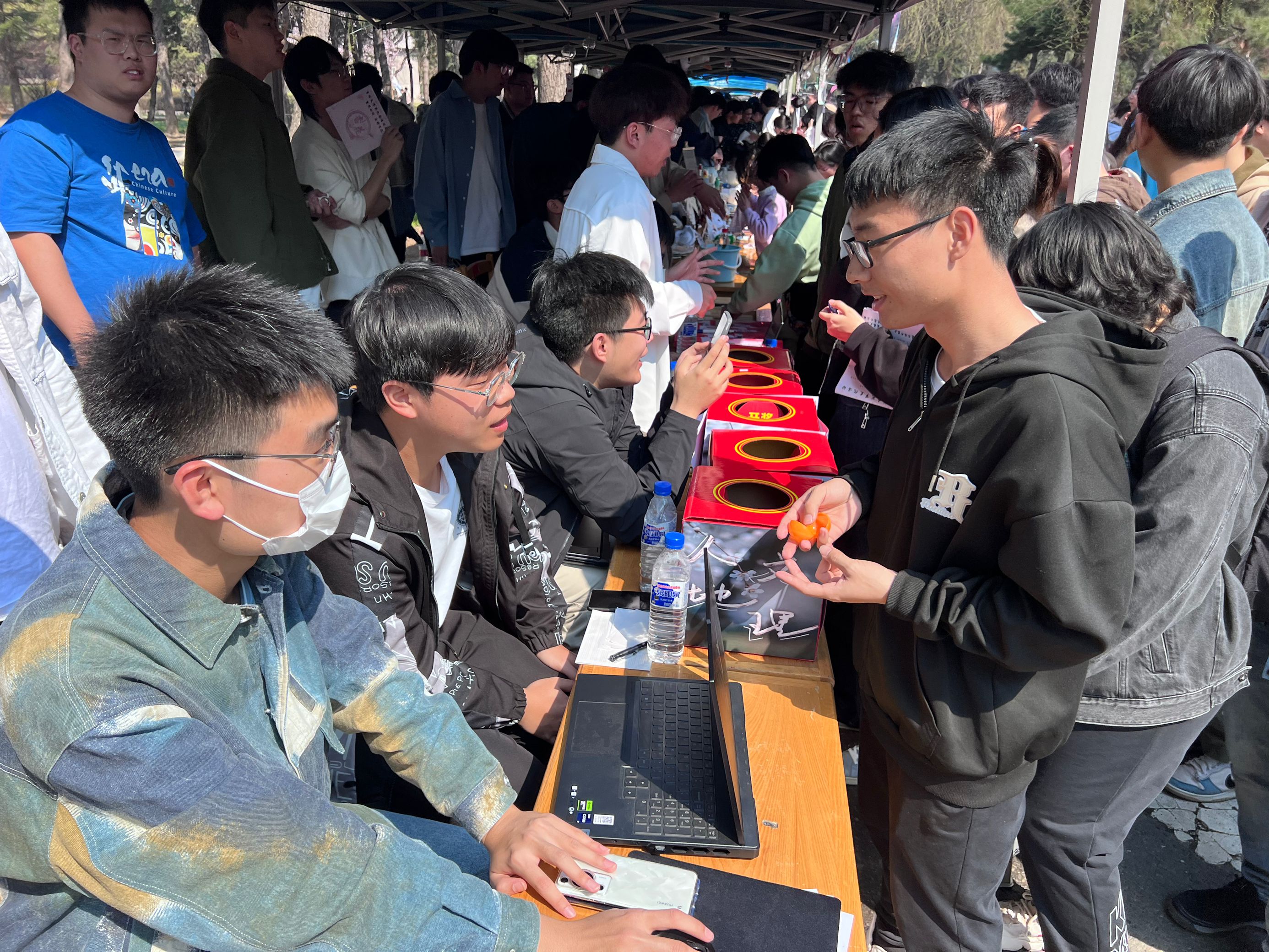 “杏花杯大师赛”趣味竞技性桌游活动中,开放了敲冰块、弹弹棋、桌面台球等小游戏,参与者们互相挑战,赢取杏花币,紧张刺激的游戏设置为活动现场增色不少。