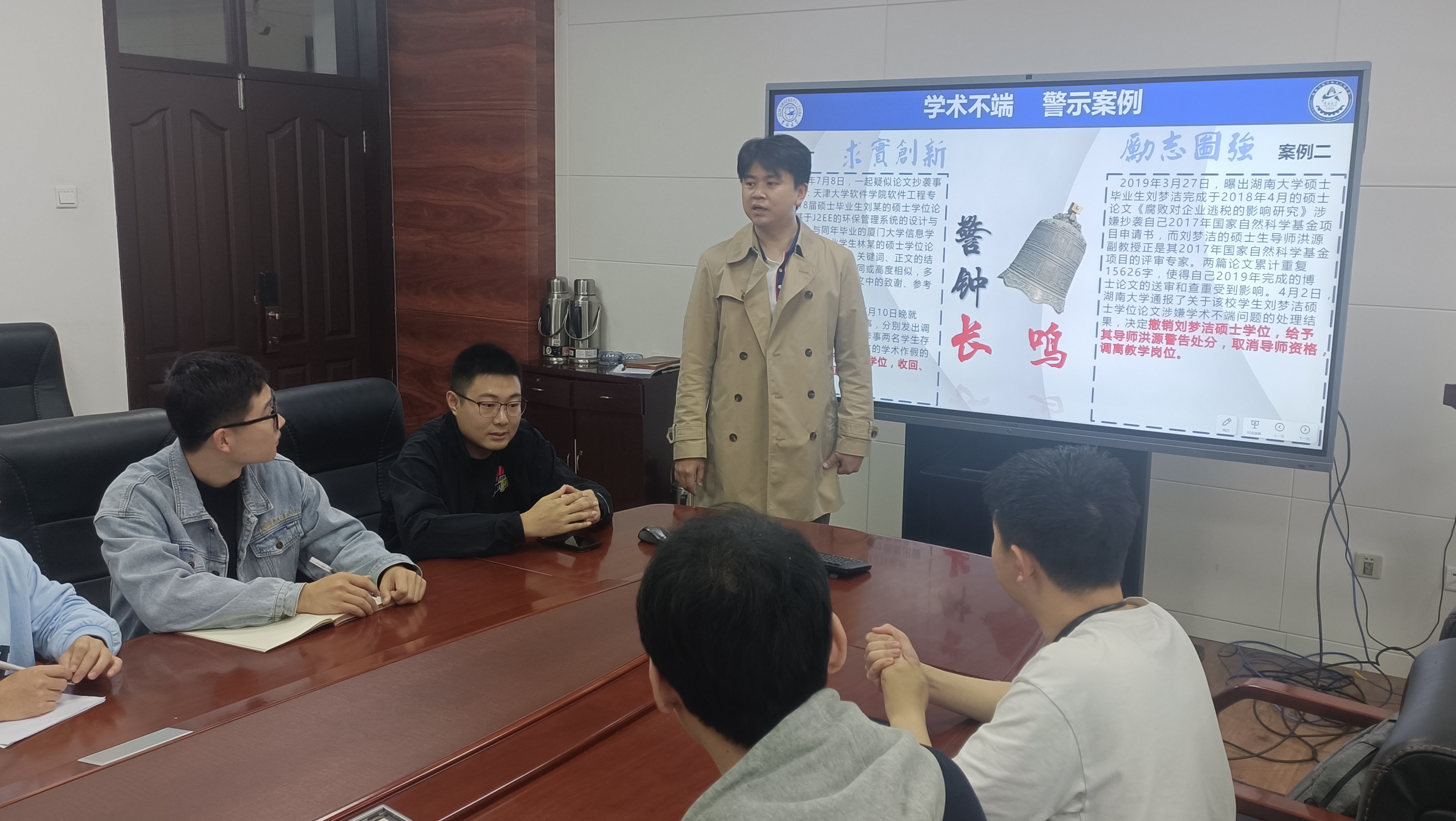张瑛向同学们介绍了中国科协“风启学林”主题社区和bevictor伟德“学风建设专题网”等权威网络平台,呼吁大家通过观看纪录片、微电影、教育动画等多样化的学习资源,深入了解我国科学领域的杰出成就和先进人物,深刻体会科学道德和学术规范的重要性。期间张瑛通报了涉及研究生学术不端的典型案例,深入剖析这些案例的成因、后果及警示意义。最后,张瑛要求各班班长组织召开主题班会,带领本班同学认真学习《关于加强学术道德建设的若干意见》等相关文件精神,严格预防学术不端行为发生。