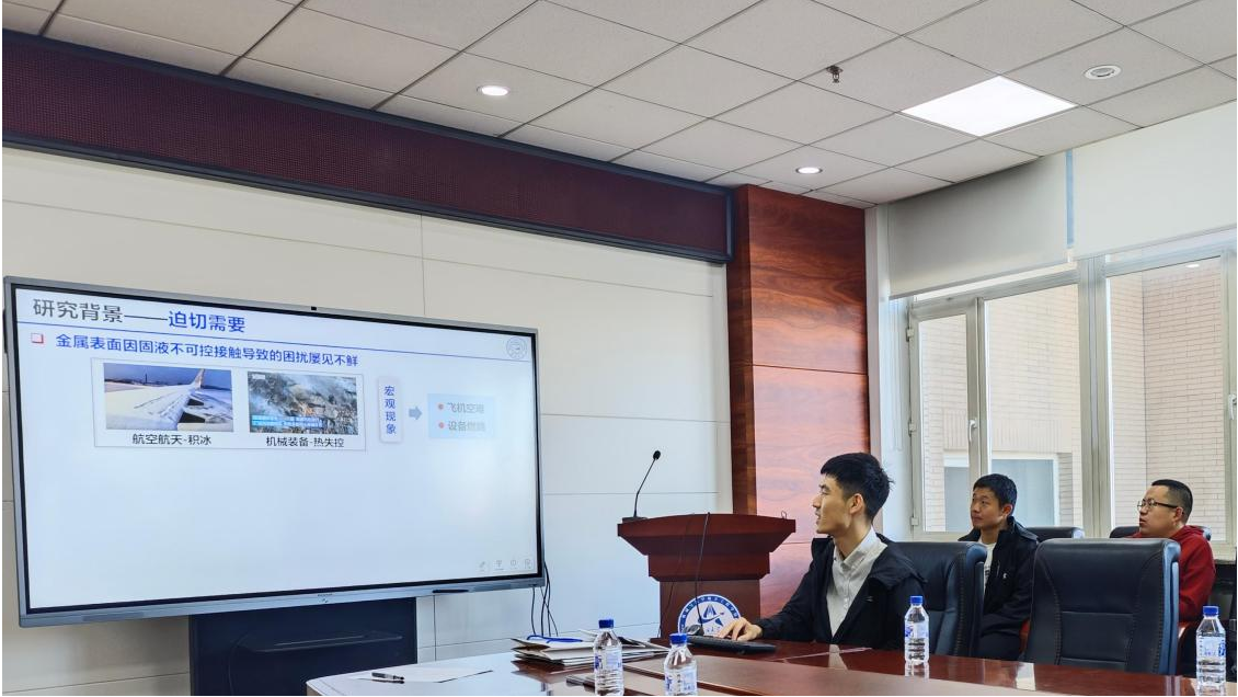 赵晟腾向同学们介绍了其研究方向“金属超疏水表面液滴连续回弹”的研究背景和研究进展,让大家了解到相关方向的前沿动态和研究热点。期间介绍了其主持和参加的主要科研项目与已发表的代表性论文,展示出严谨的科研方法、清晰的逻辑思维和精湛的写作技巧,同学们可以从中学习到如何进行科学实验设计、分析与处理数据以及撰写高质量的学术论文。赵晟腾还分享了自己的科研经历和心得体会,寄语同学们从实际问题出发,运用科学的方法进行深入研究和创新,同时保持良好心态,为自己的课题研究注入新的活力。