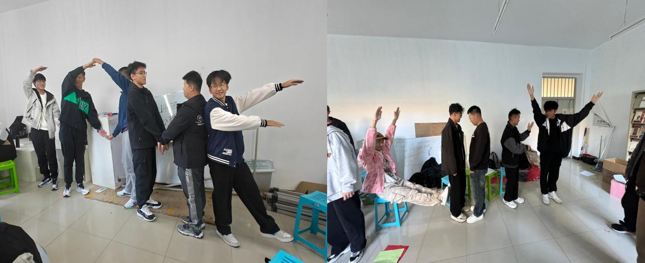 “人体字母”游戏中,同学们肩并肩、手拉手,共同创造出了一个个生动有趣的字母造型,这不仅让大家开怀大笑,更是展现出同学们的团队协作能力,加深了团队合作的意识。