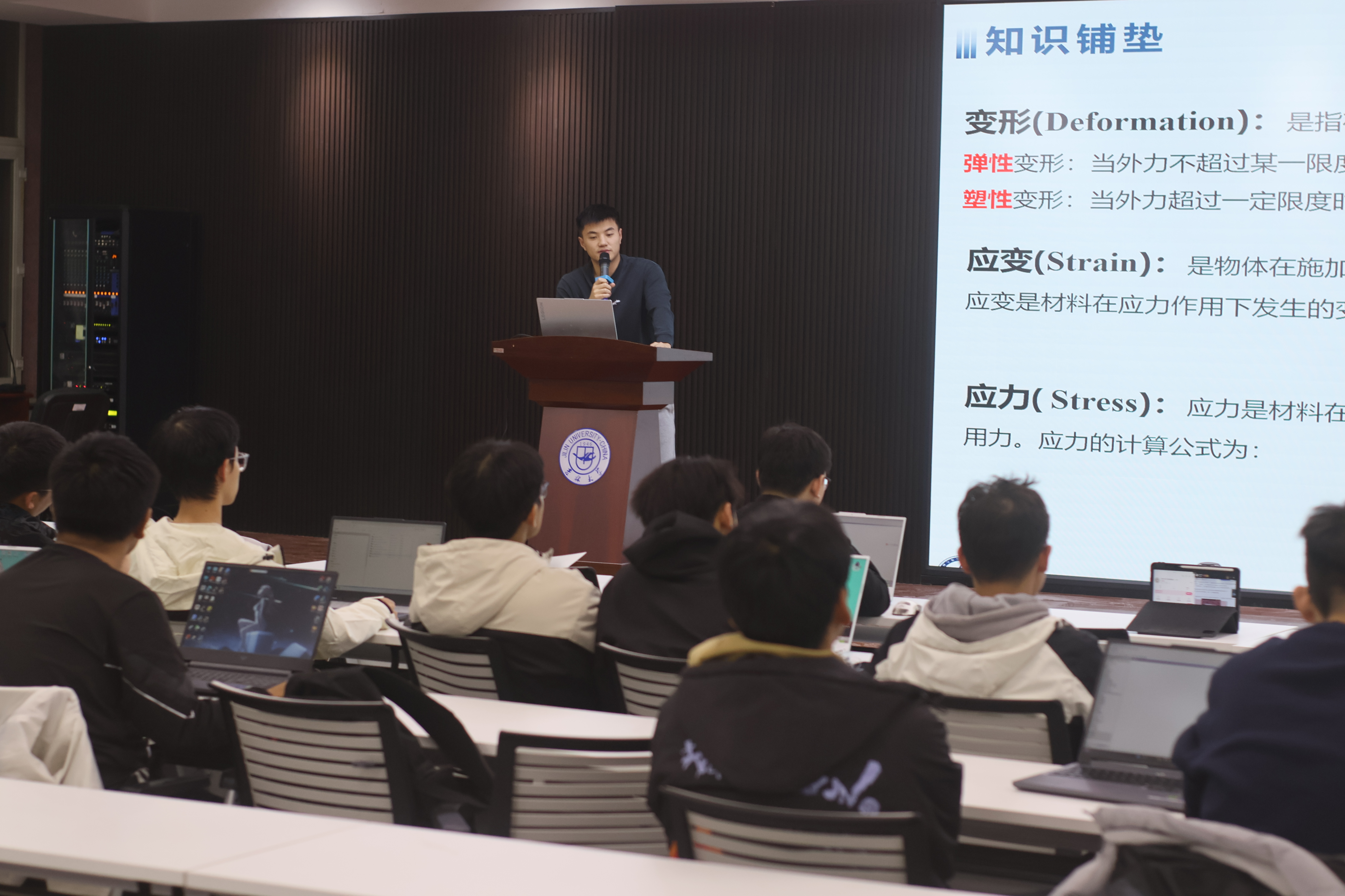 紧接着,范余庆同学开始讲解本次培训会的内容,将ANSYS静力学部分内容进行详细的讲解,包括自定义材料、网格剖分、以及力学和形变的分析等相关内容。在教学的过程中,范余庆同学耐心细致地解答同学们在软件实操上的问题,与同学们积极探讨软件应用技巧,让同学们受益匪浅。