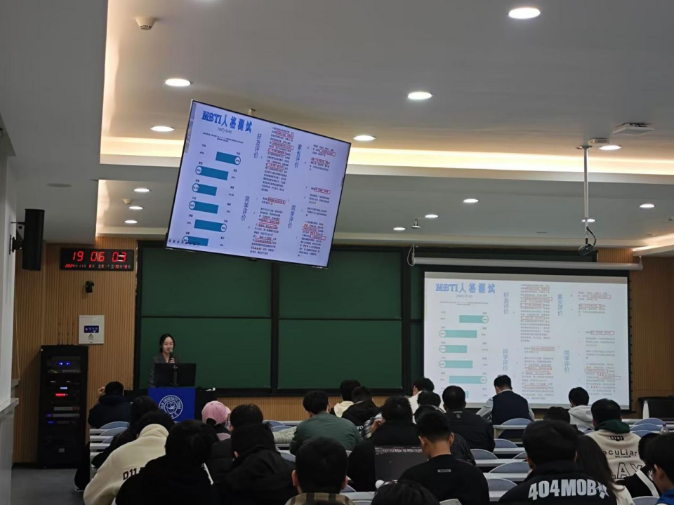 周小涵以自身的职业规划大赛经历为切入点,详细讲述了成长赛道准备的心路历程,包括如何在大学期间明确职业目标、制定职业规划,不断努力和实践的方向等过程。她强调了职业规划的重要性,用数据和图表等向同学们进行了生动地展示,并鼓励同学们要积极参与此类比赛,勇敢追求自己的梦想,不要害怕失败和挫折。