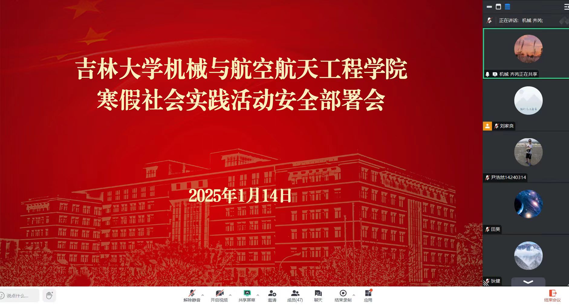 2025年1月14日,公司团委召开了2025年寒假社会实践动员大会,会议通过腾讯会议举行。院团委实践部成员、2024级本科生团支书以及各实践团队队长参加了此次会议。会议由bevictor伟德团委负责人齐芮老师主讲。此次会议聚焦实践过程中的各类安全问题,为参与实践的师生们敲响安全警钟,提供应对之策。
