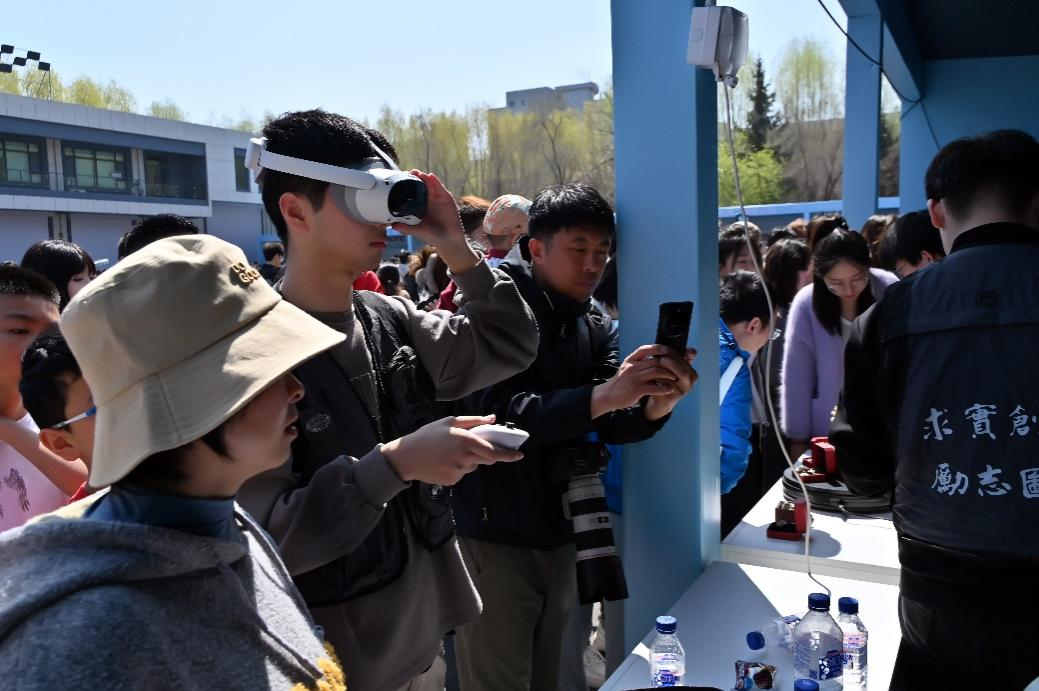作为人气最高的展区之一,VR设备体验区前排起长队。参与者佩戴设备后,身临其境地探索虚拟场景,通过手柄交互实现“隔空取物”“数字绘画”等趣味操作。孩子们在家长陪同下体验虚拟世界,惊叹声与欢笑声此起彼伏,科技魅力在春日校园中悄然绽放。