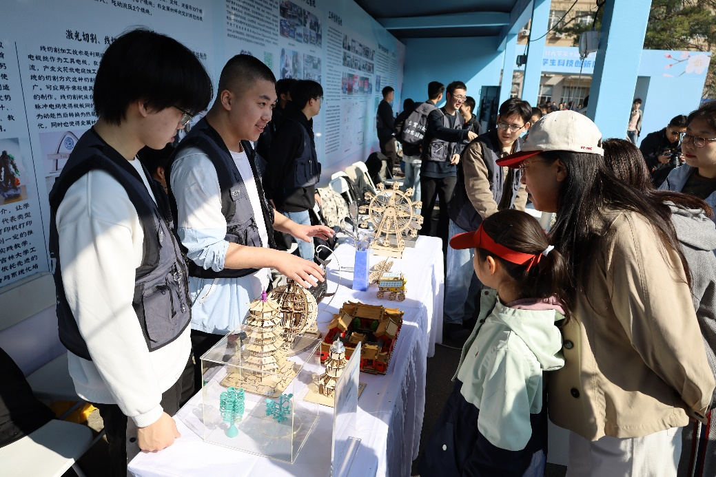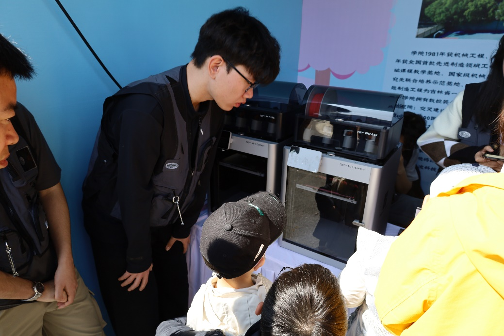 3D打印展台前,层层堆叠成型的杏花主题作品引发观众好奇,基地成员现场演示建模与打印流程,解析增材制造技术原理。