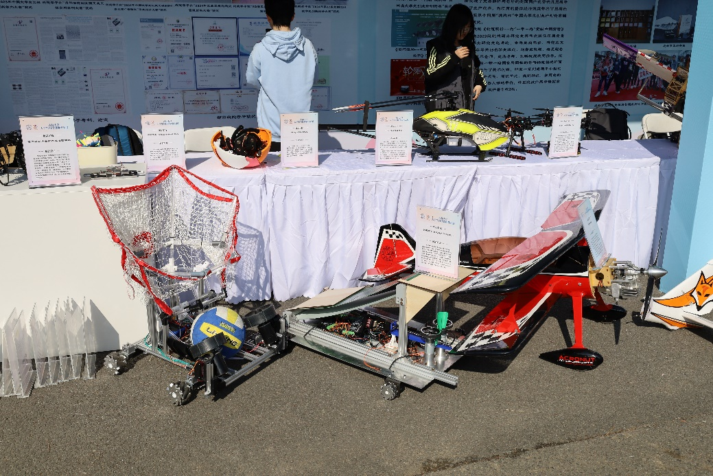 该展区巧妙融合实物展示与互动体验:静态陈列的航模飞机以流线型设计与轻量化材质吸引航模爱好者驻足品鉴;一旁屏幕同步运行模拟飞行软件,观众可通过操作台实时操控虚拟航模,屏幕动态呈现飞行轨迹与参数变化。基地成员结合实物讲解气动布局原理,让观众在“虚实结合”中领略航空技术的精妙。